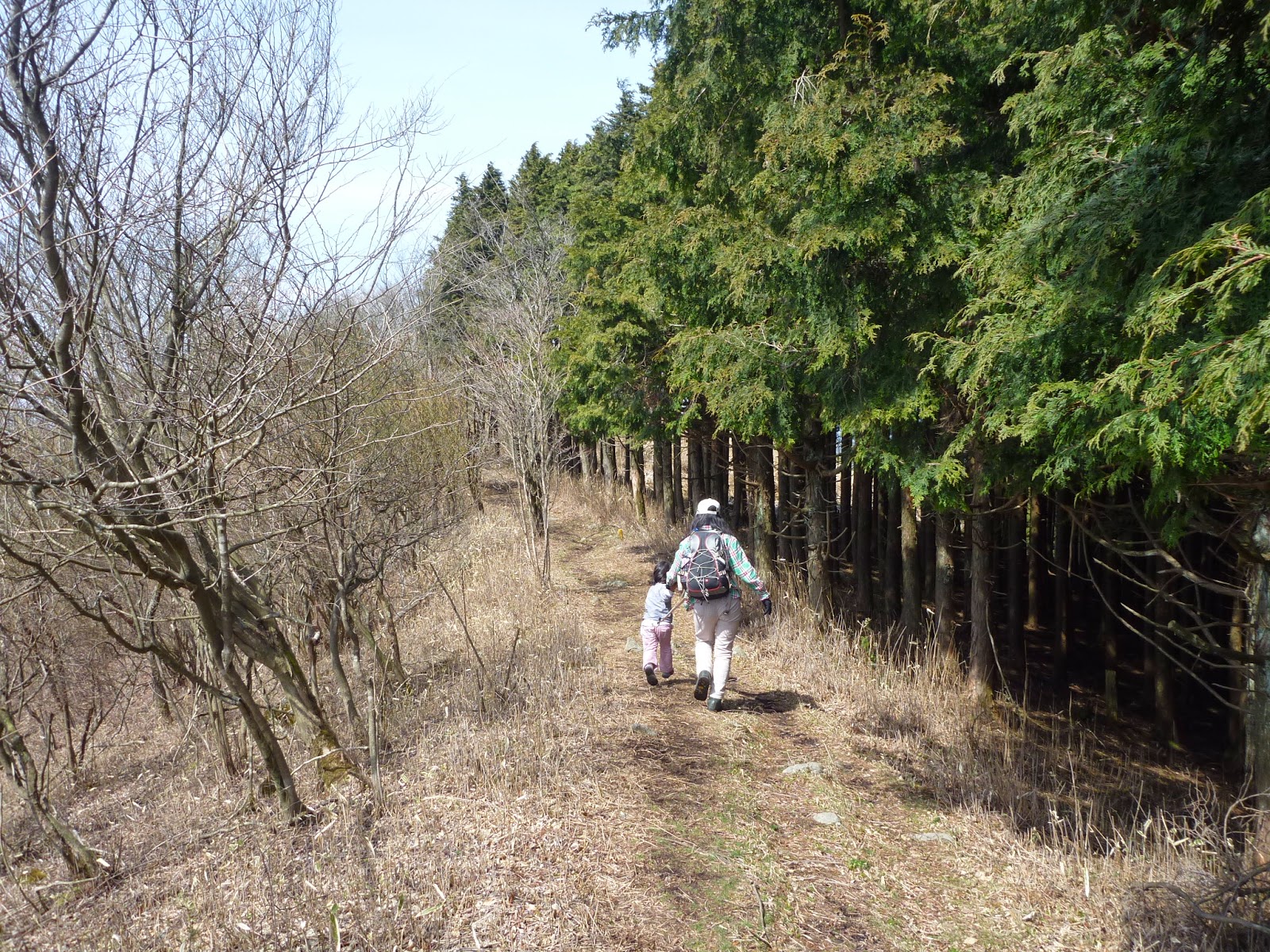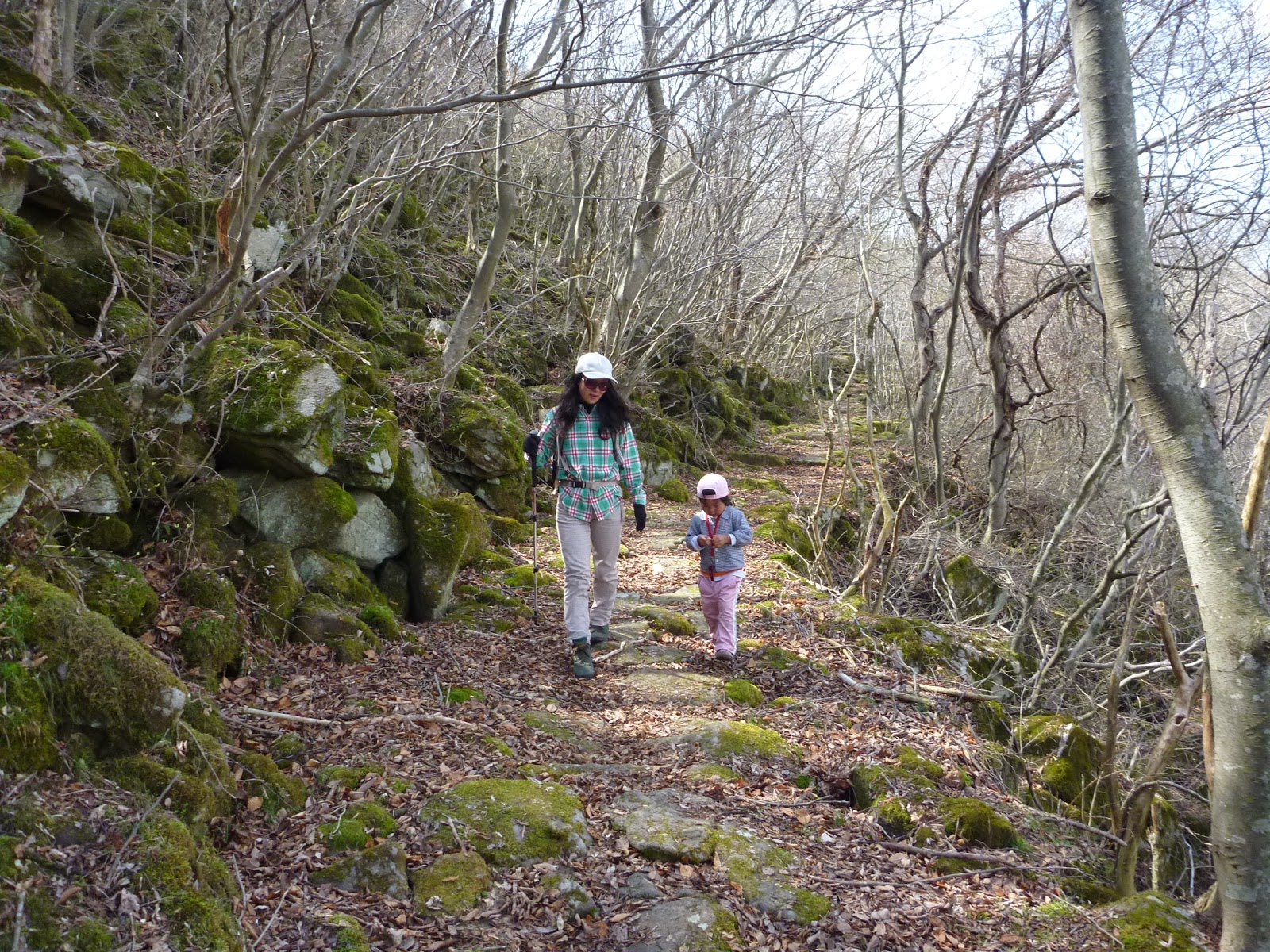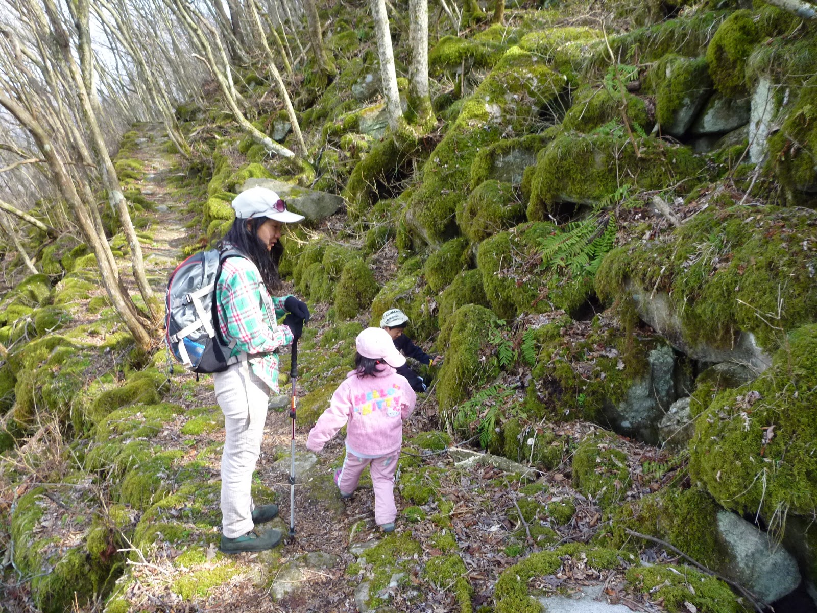 歩いていると暑いけど、じっと背負われていると寒い春の山