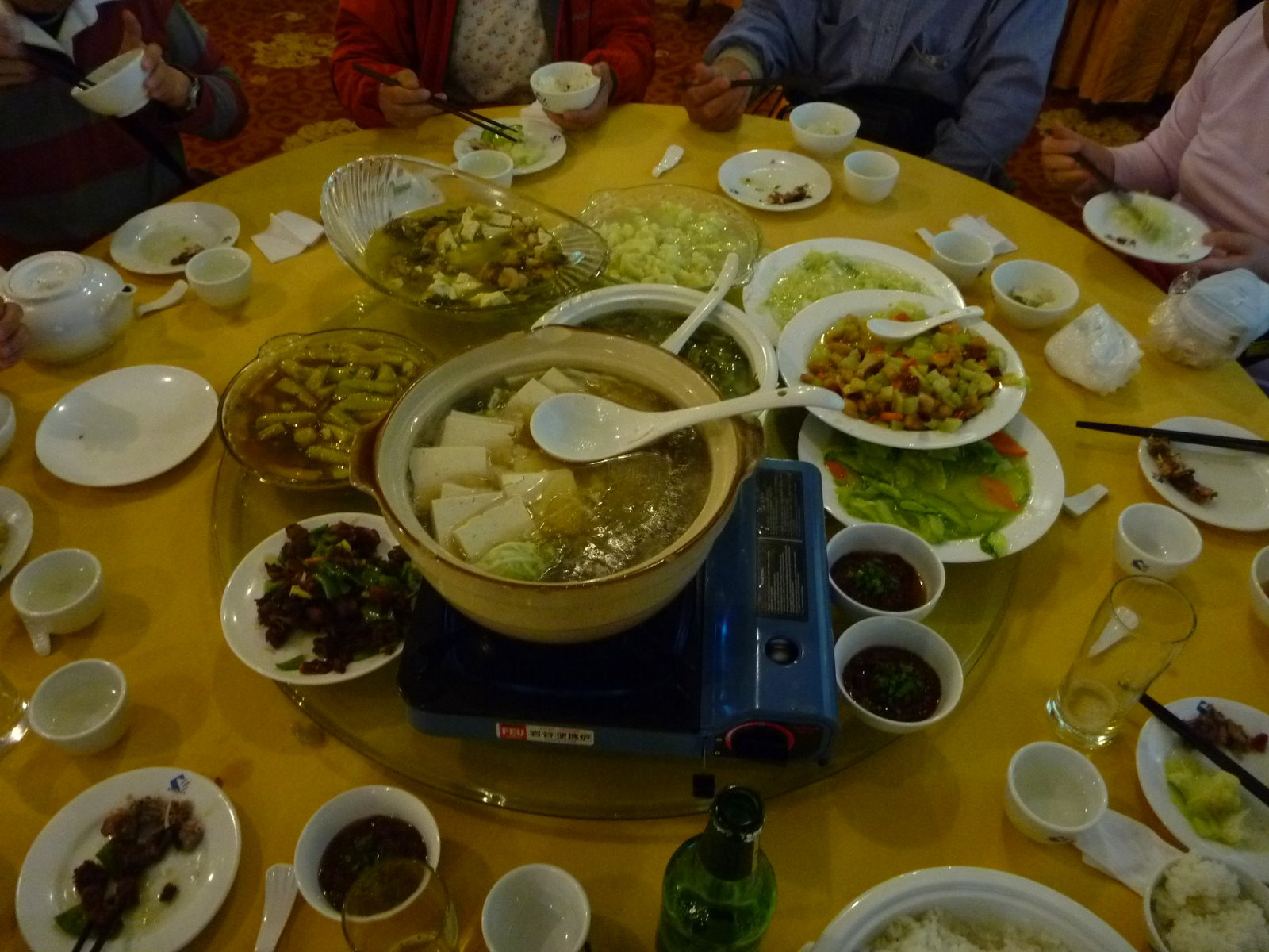 チベット式お昼ご飯とバター茶。この旅行中初めてレストランのスタッフが笑顔でした!