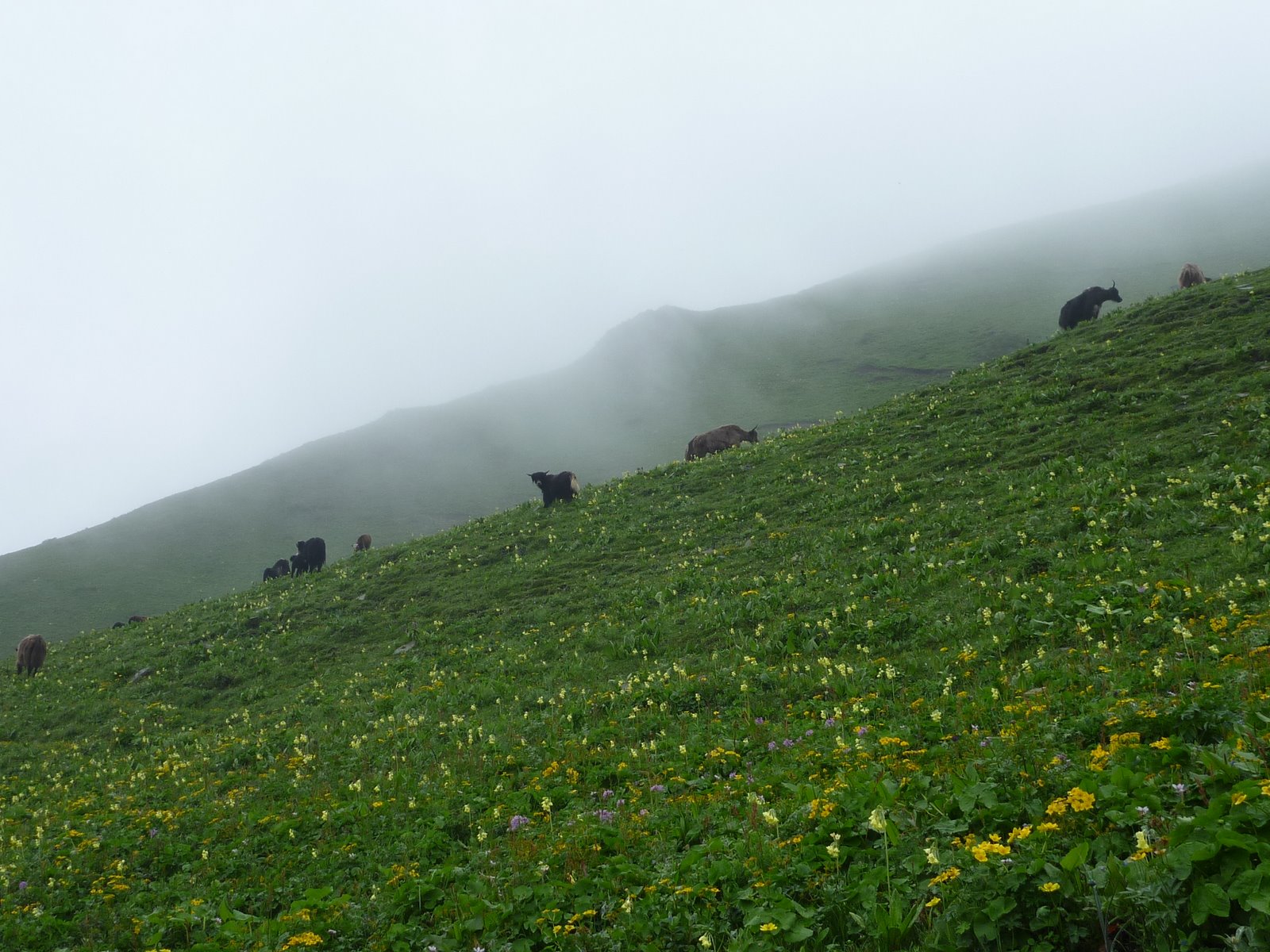 この景色はヤクが作ったのに。このお花畑の将来が心配。