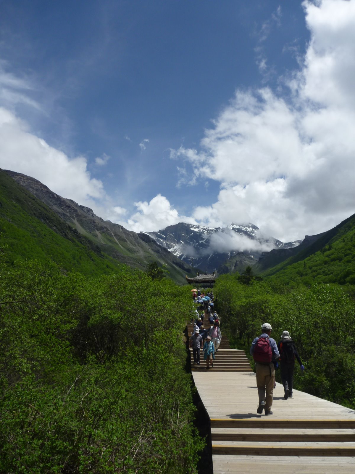 観光客はゴンドラで観光しますが、私たちは高度順応のため歩いて観光。