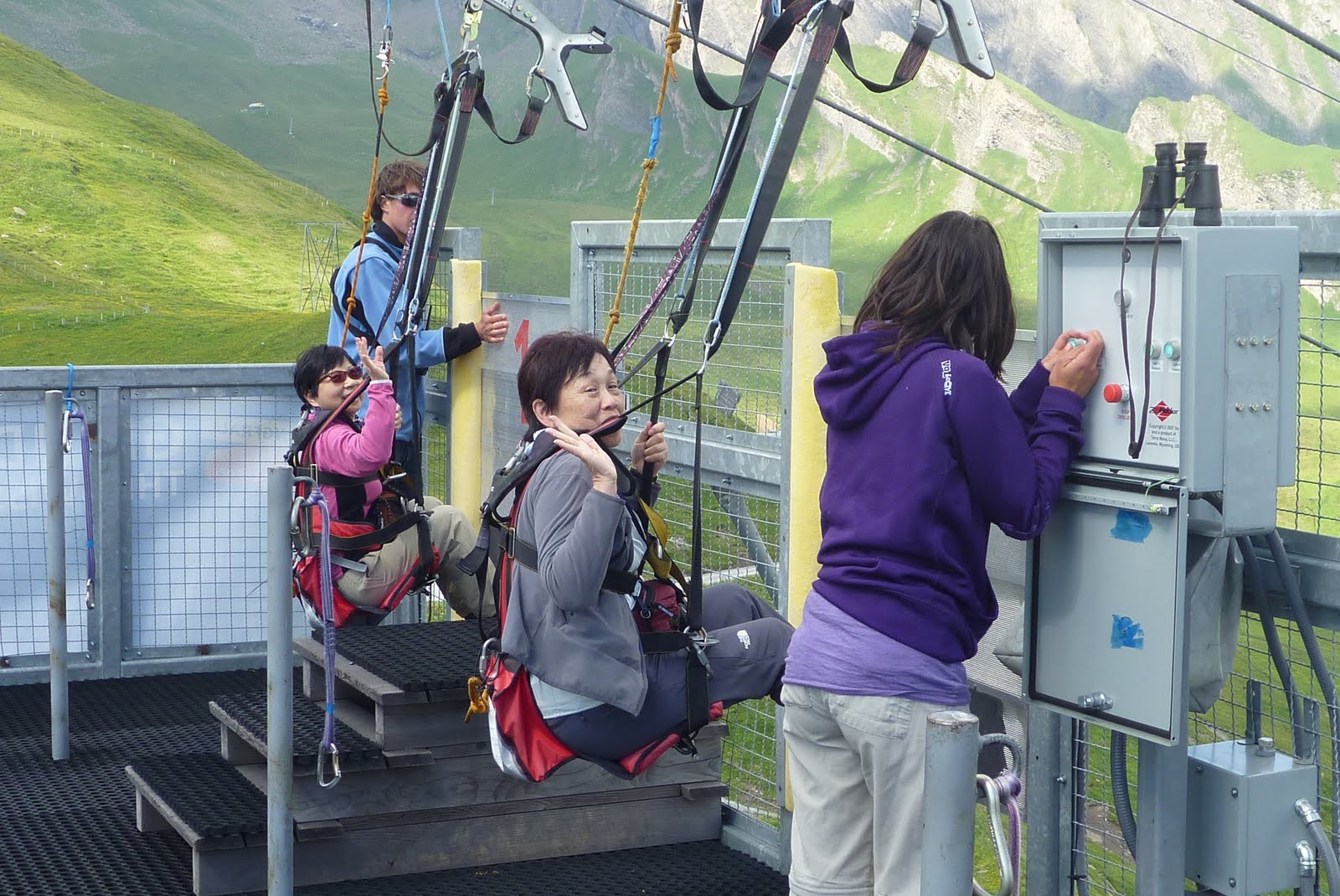 お楽しみのフィルストフライヤー 一気に下の駅まで滑空します!