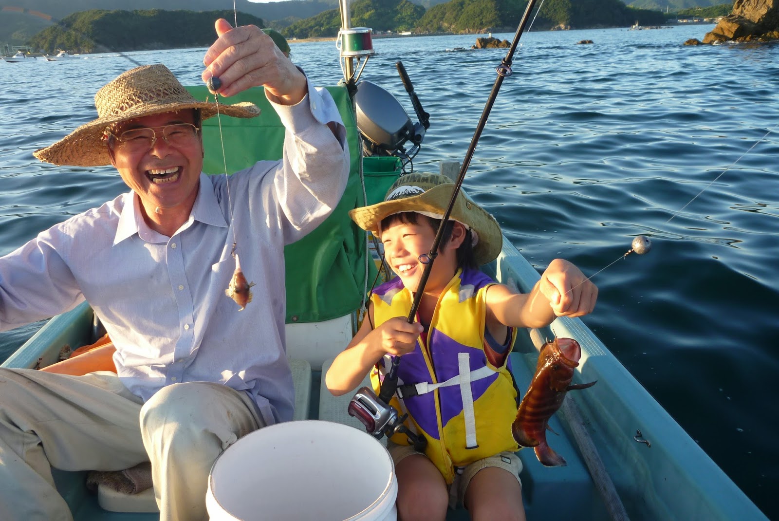 親父はふぐ、息子はクエを同時に釣りあげた!