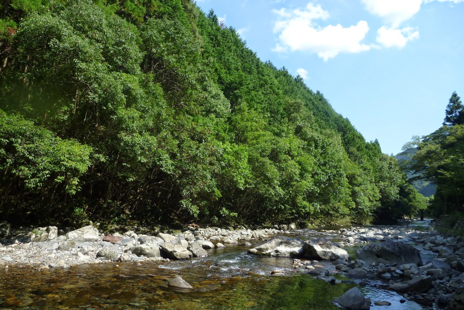 まずは近所の川へ! 本流より支流の方が影もあり過ごしやすい。
