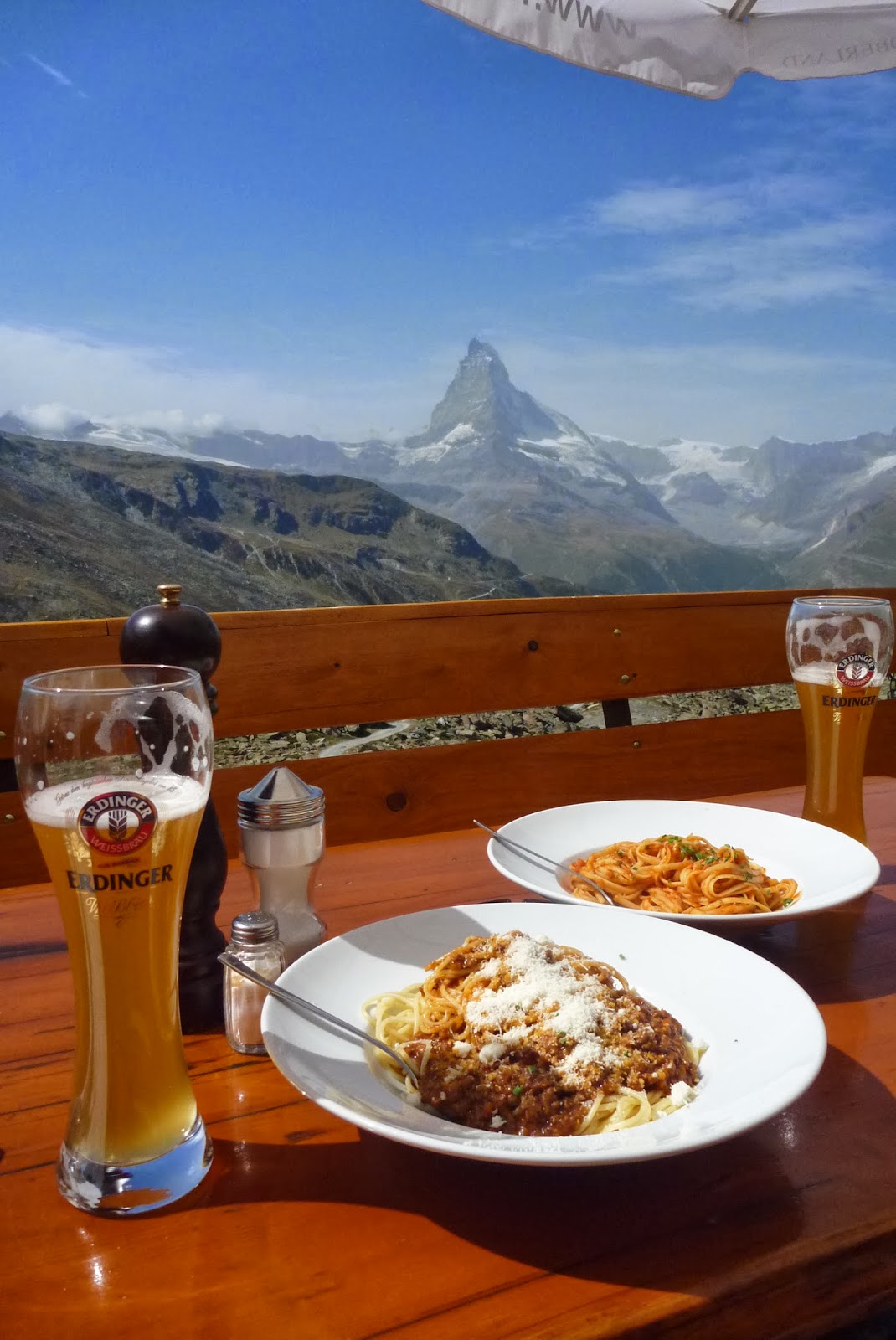 ブライトホルンは見えていますが、マッターホルンは直前までわかりません