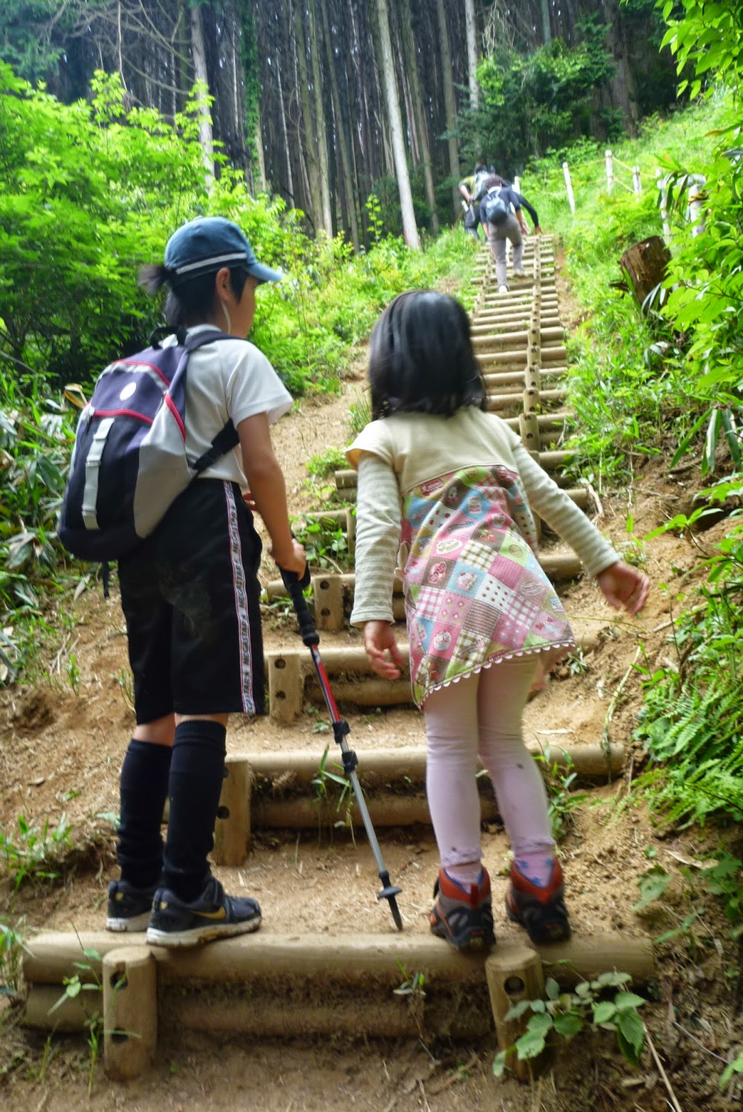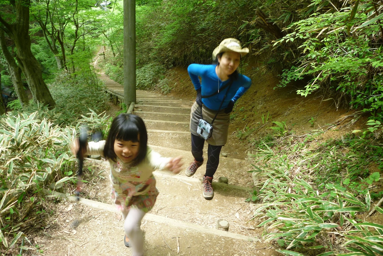 大人の登山者に褒められてご機嫌!