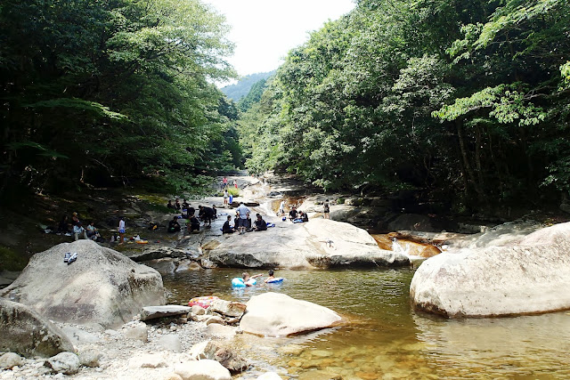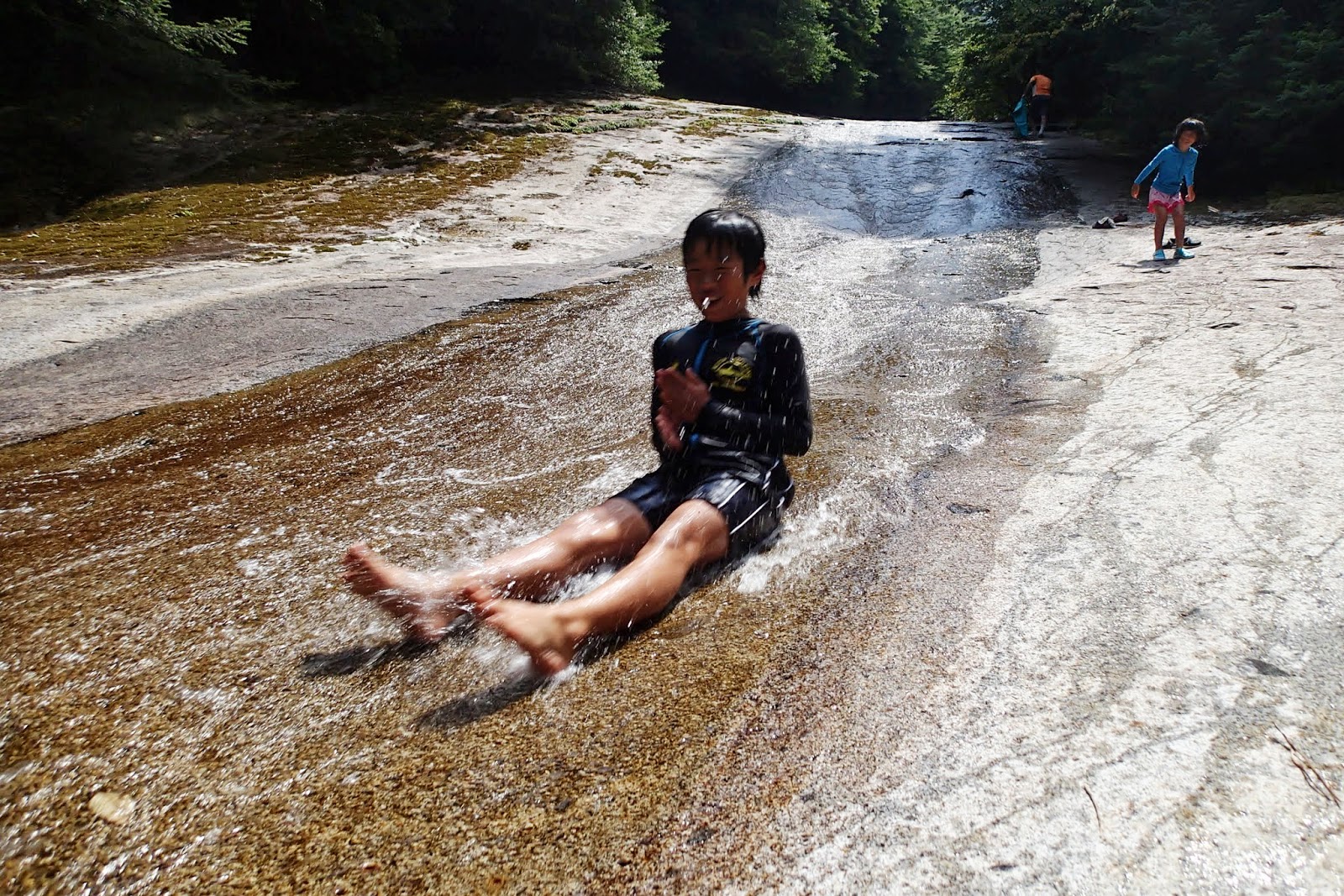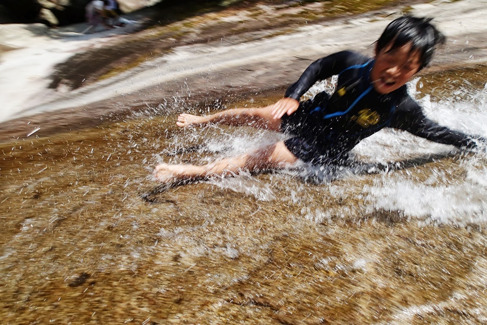 今年の四万十は雨が少なく水位が低い。更に水温が高い。清流という人もいるので冷たい水のイメージがあるかもしれないが、ほとんど温泉??ってくらいヌルい。浅くて、流れも緩やかで、体温も奪われず子供の川遊びとしてはいい環境でした。