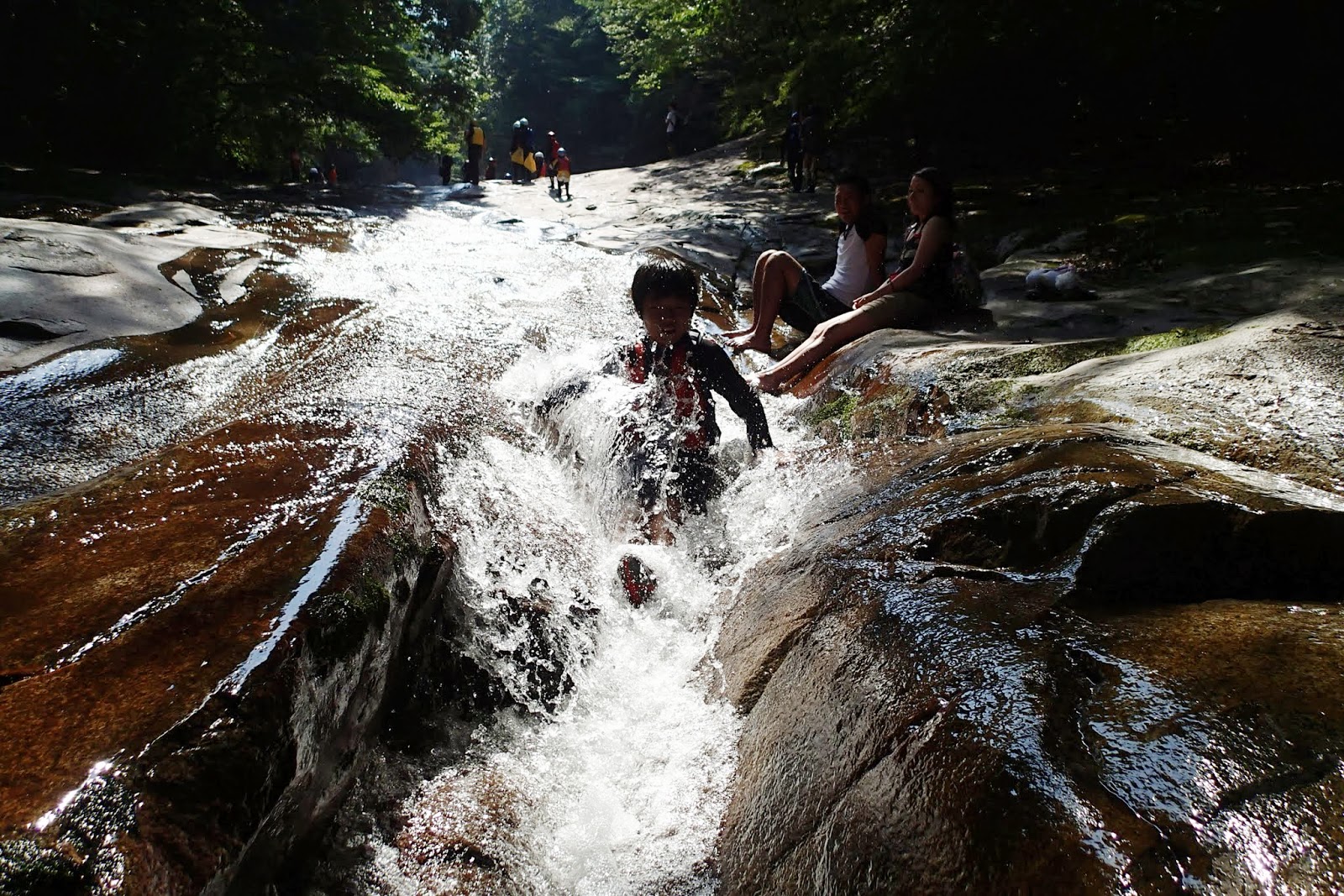 帰る前にキャニオニングツアーの御一行様がやってきた。一本のザイルで7人以上同時に登らせる異常行為(゚o゚;; 多分、山岳ガイドのライセンスどころか講習なんで受けてないでしょう。他にも時間短縮のため、非常に非常に危ない行為が数多く見られた。先頭が滑ると全滅やん!いつか事故やるぞ。どこの主催かは知りませんが、ガイドは選びましょうね。
