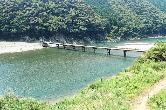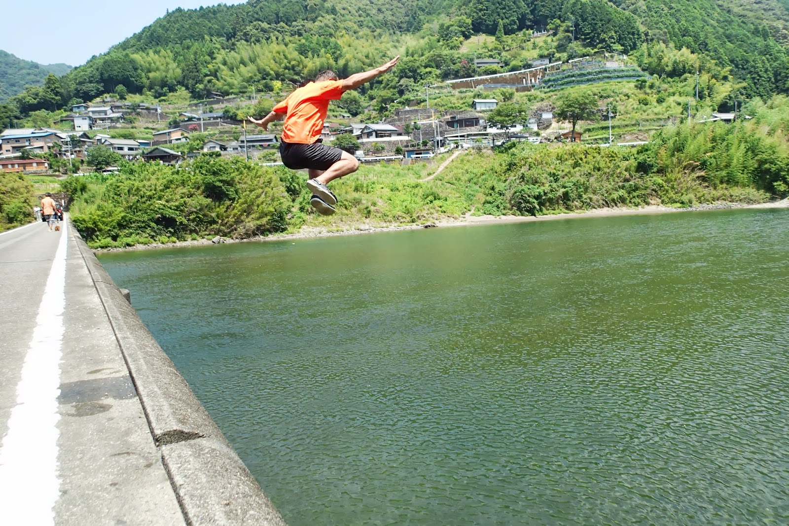 最後の日は子供が四万十川の橋から飛び降りたいというので、いつも飛び込んでいた口屋内へ。なんと橋の架け替えで通行禁止。