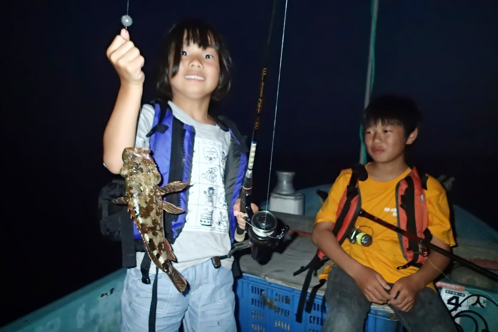 娘はさっきまでの渓谷遊びで疲れ果て、船の上で爆睡。このまま終わるかと思ったら、最後で目が覚めて、釣り始めた。