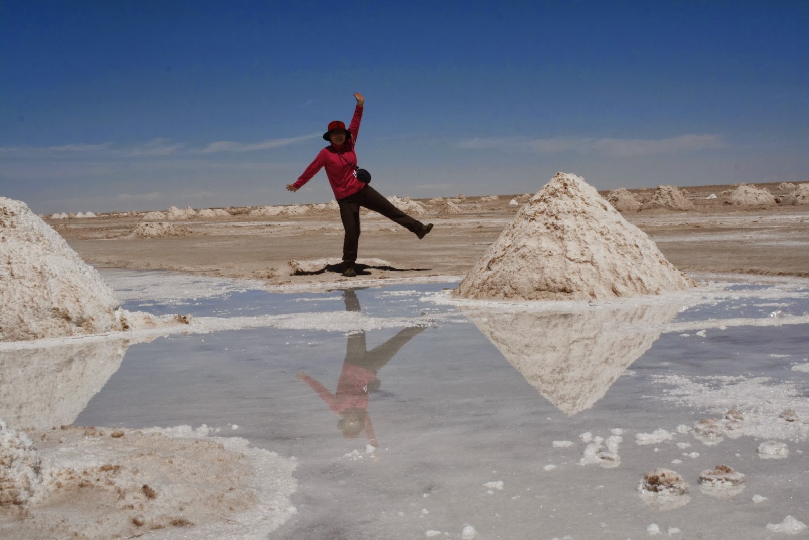 塩湖の淵を少し歩いてみました。鏡がキレイ!