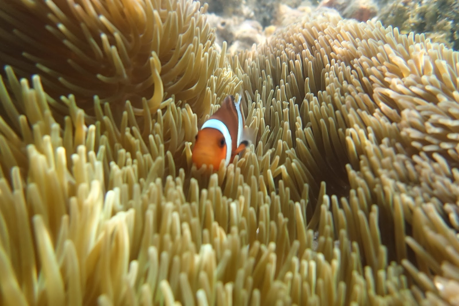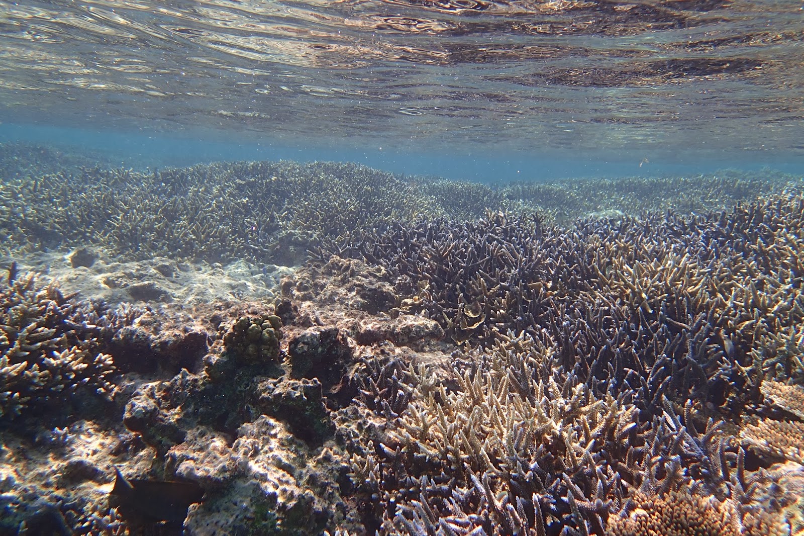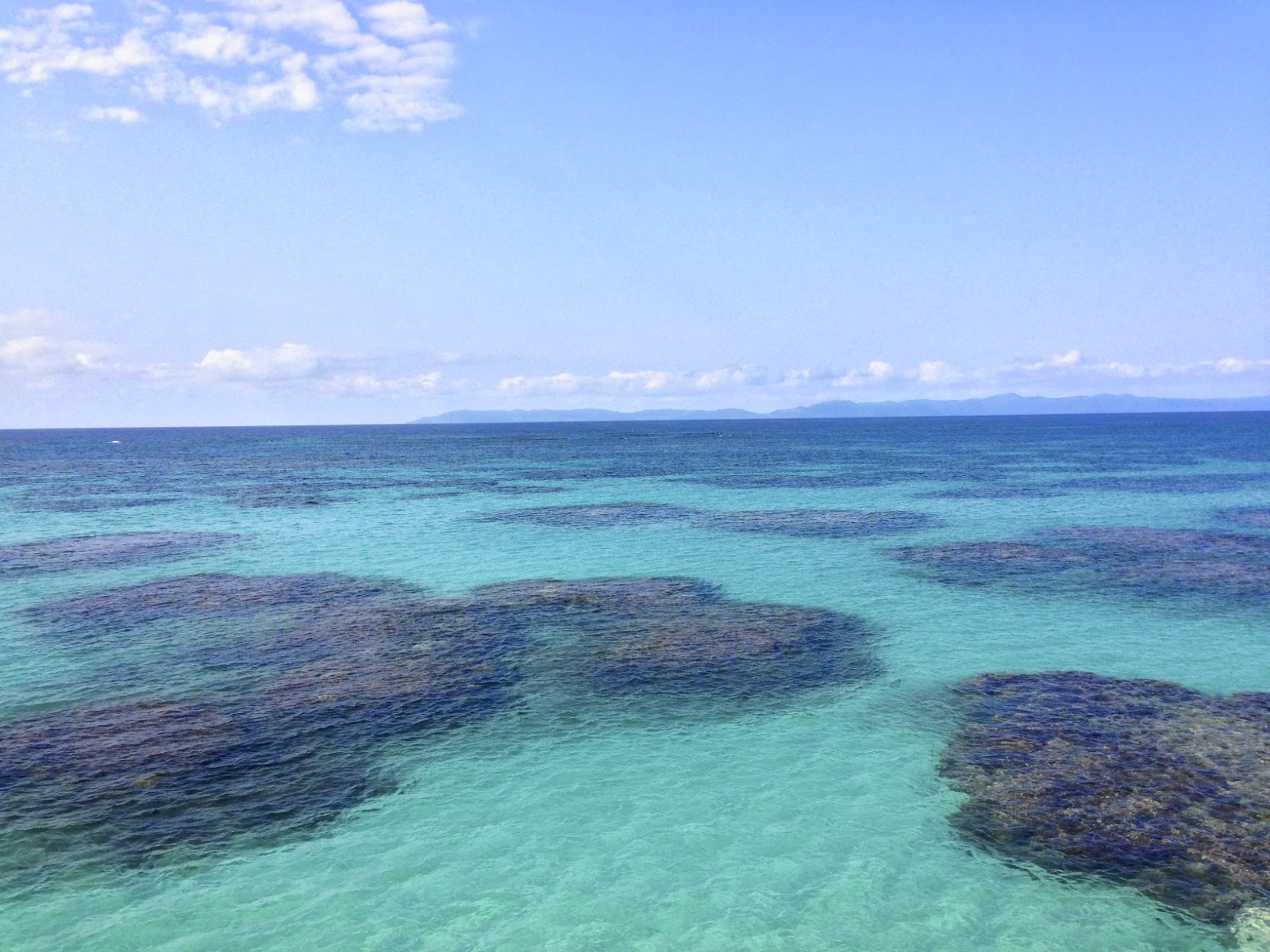 晴れたらね、珊瑚礁が綺麗に見えるんだけど。