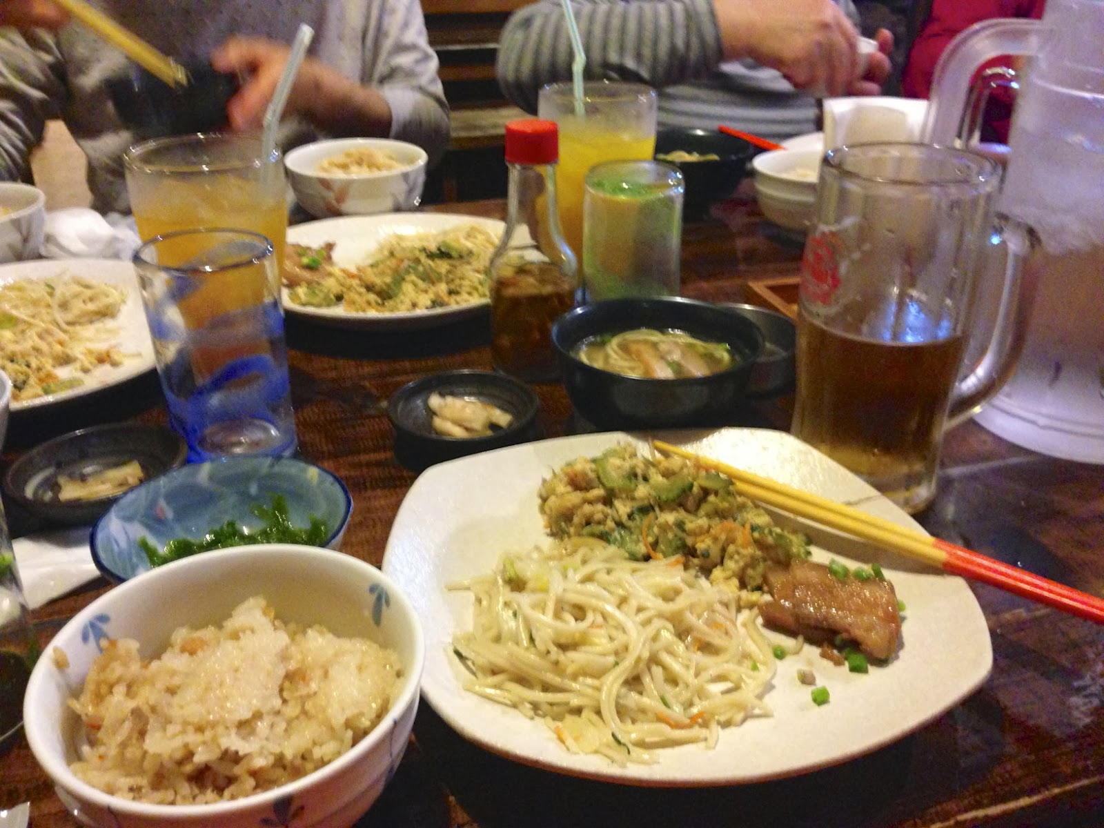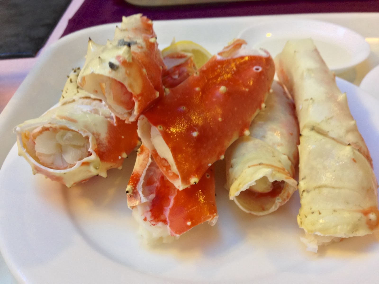 ホテルの食事は大混雑。バラバラでバイキング。何故かタラバガニの食べ放題。