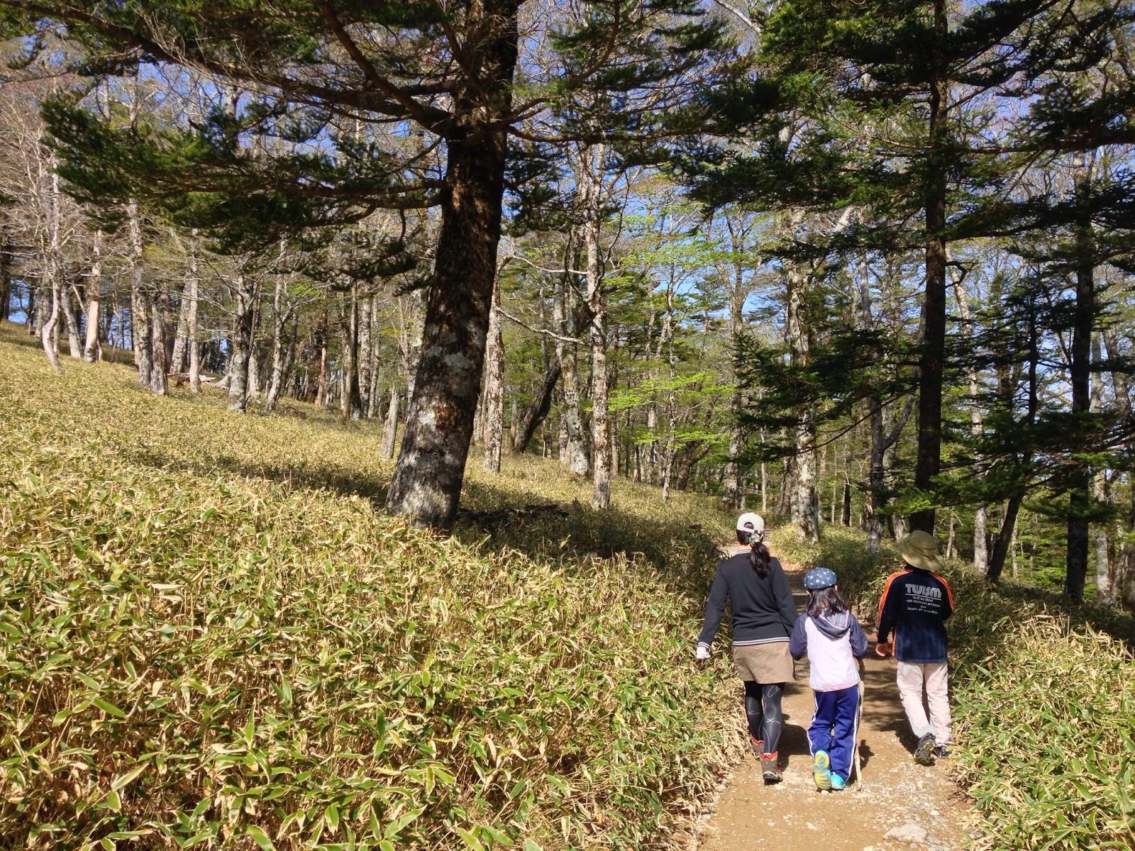 牛石ヶ原への道・・・疲れて歩けないというので肩車