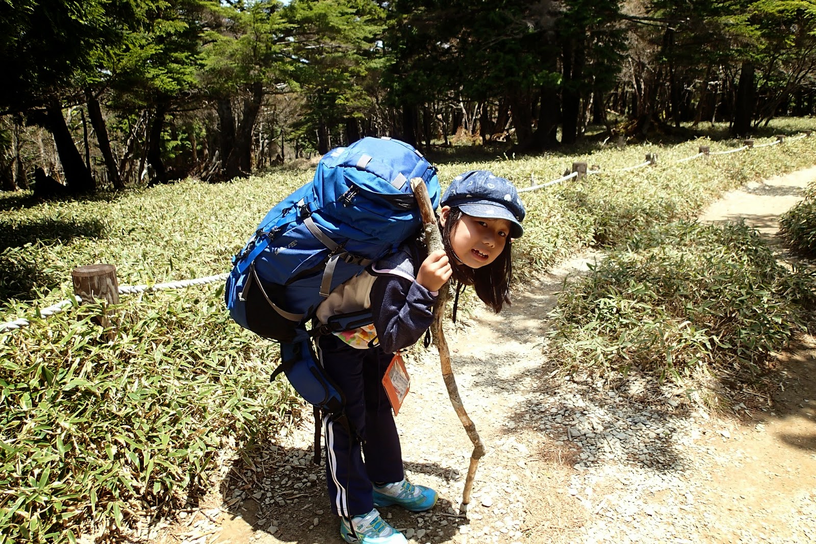 牛石ヶ原への道・・・疲れて歩けないというので肩車