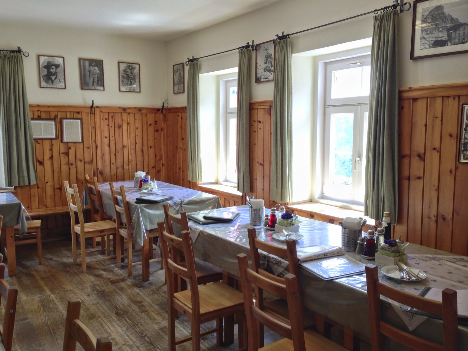 昼食は山小屋で。そして、昨日に続いてまたしてもランチ中に雨。