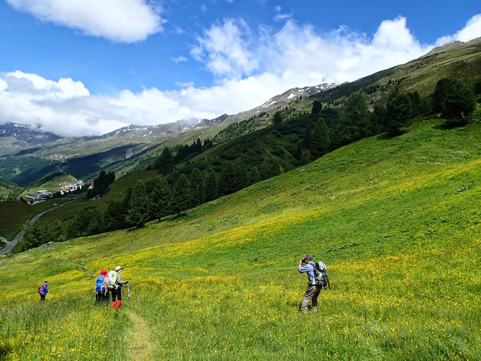 中間駅までゴンドラで下り、お花畑のハイキングを楽しみました。