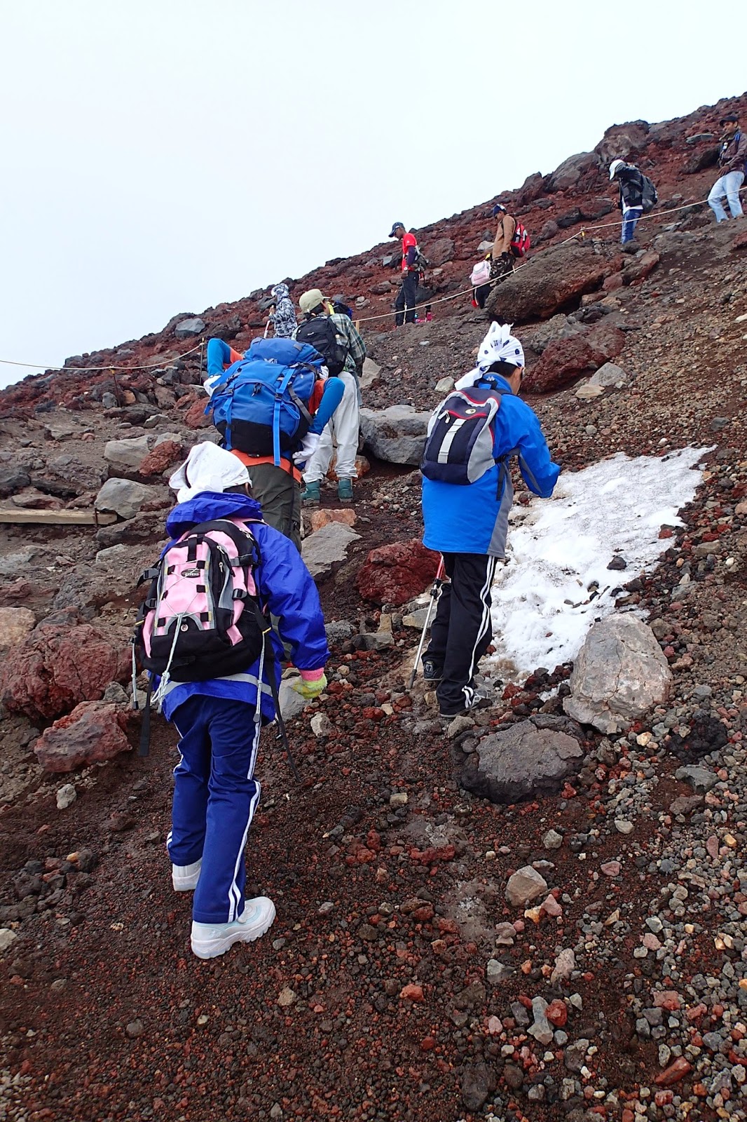 まだまだ余裕の九合目。スピードも申し分ない。そろそろ、高山病を考えず、ハイスピードで登っていた若者がくたばる頃です。