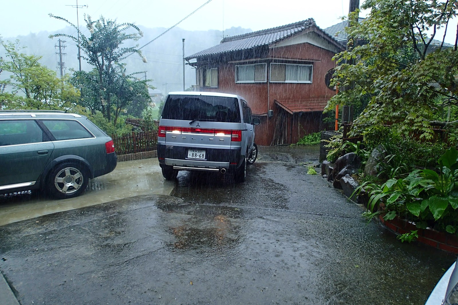 本当は昼間に台風の目が通過し、一時的に晴れてその後風向きが変わるのを見せてあげたいのですが。