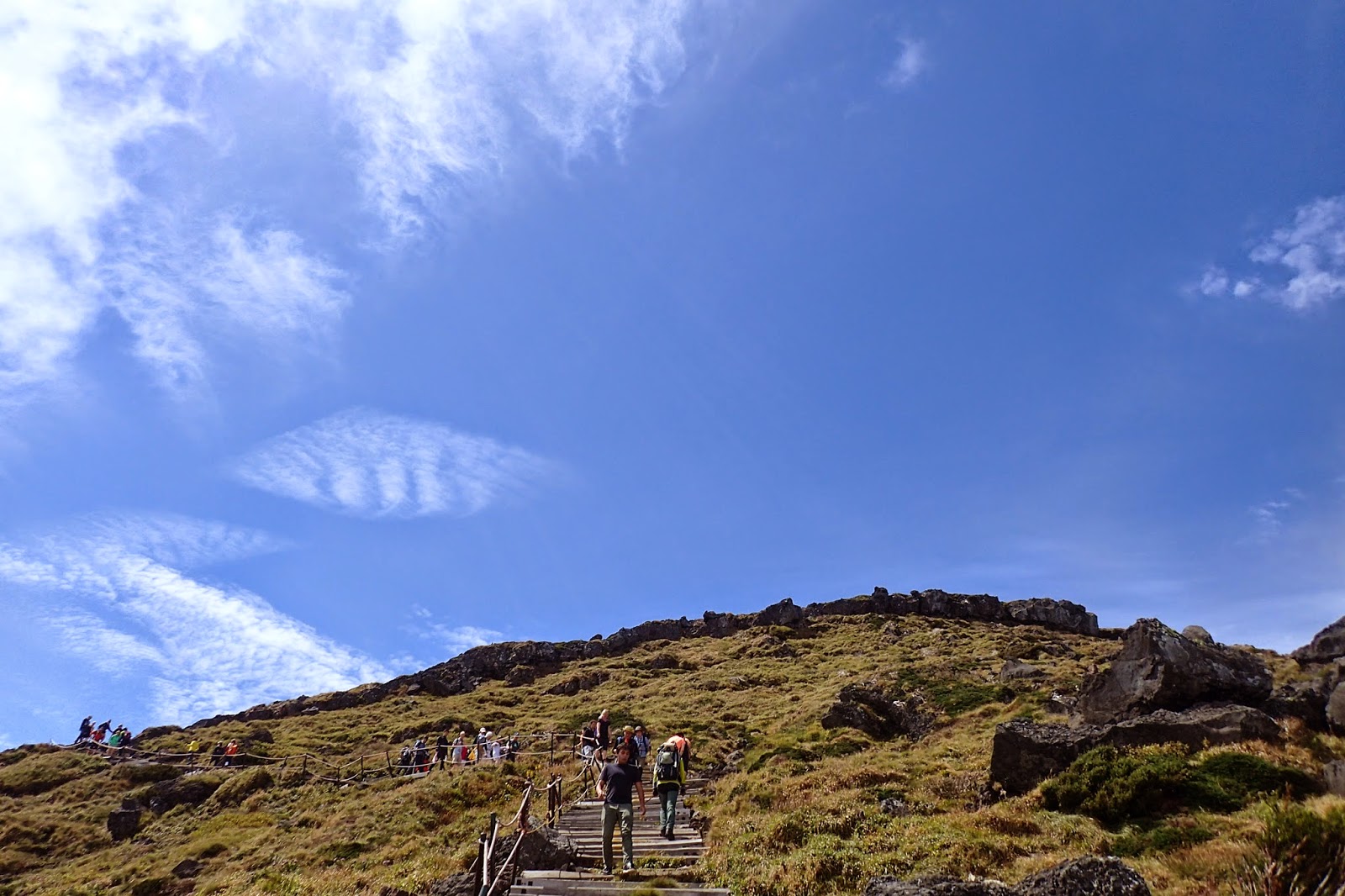 ハンラ山は粘度の低い溶岩で出来ているので、裾野が広くてなだらか。