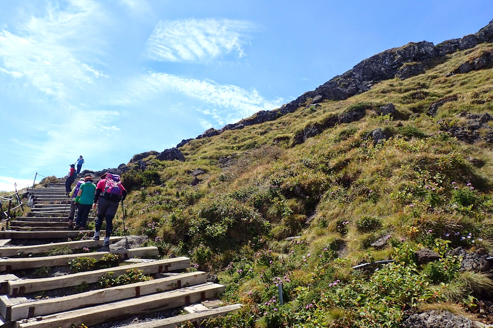 標高は1950mとそんなに高くありません。島の中心に山が聳えているので、無理やり日本の山に例えるなら、利尻山のようなイメージ。世界自然遺産に登録されています。山中で宿泊はせずに、日帰り登山となります。登山道やトイレはしっかりと整備されています。難易度は高くありませんが、意外と距離が長く、行動時間が長くなります。 また、ポイントごとに入山禁止時刻が決められており、事故を未然に防いでいます。逆に言えば、自由な登山はできないということです。
