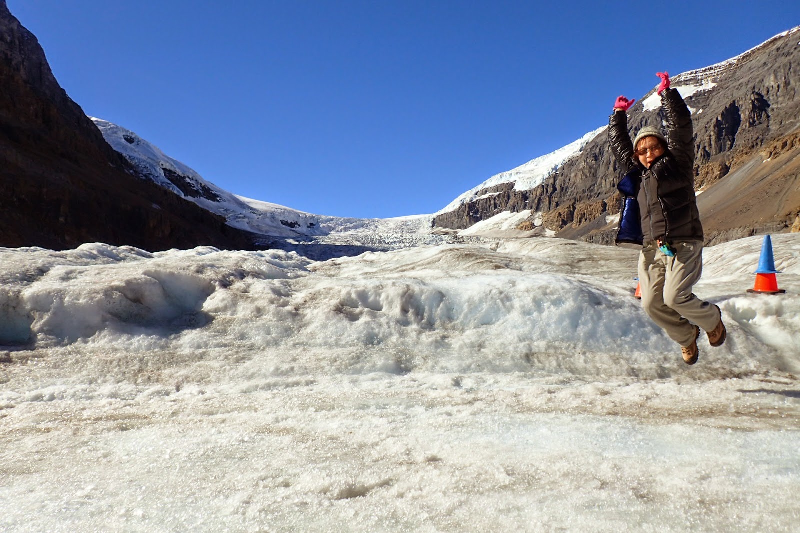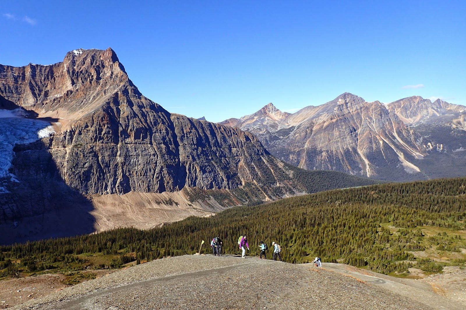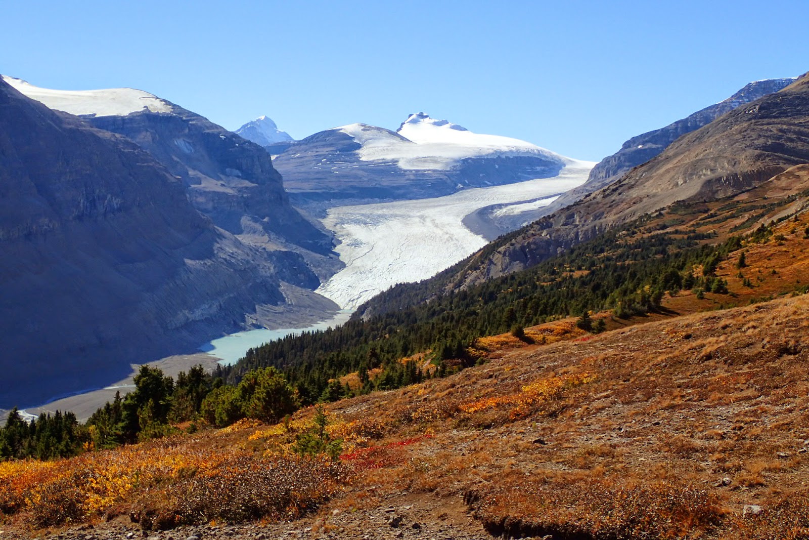 サスカチュワン氷河を見下ろす丘の上まで歩きます。