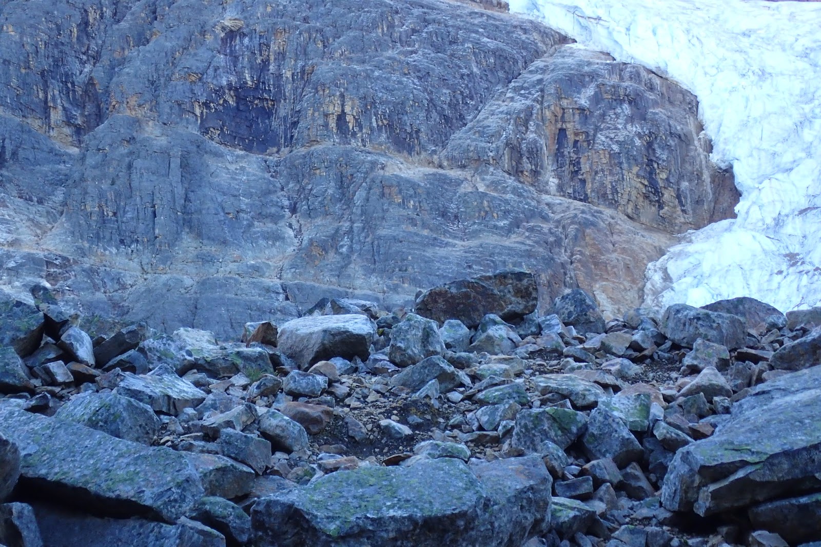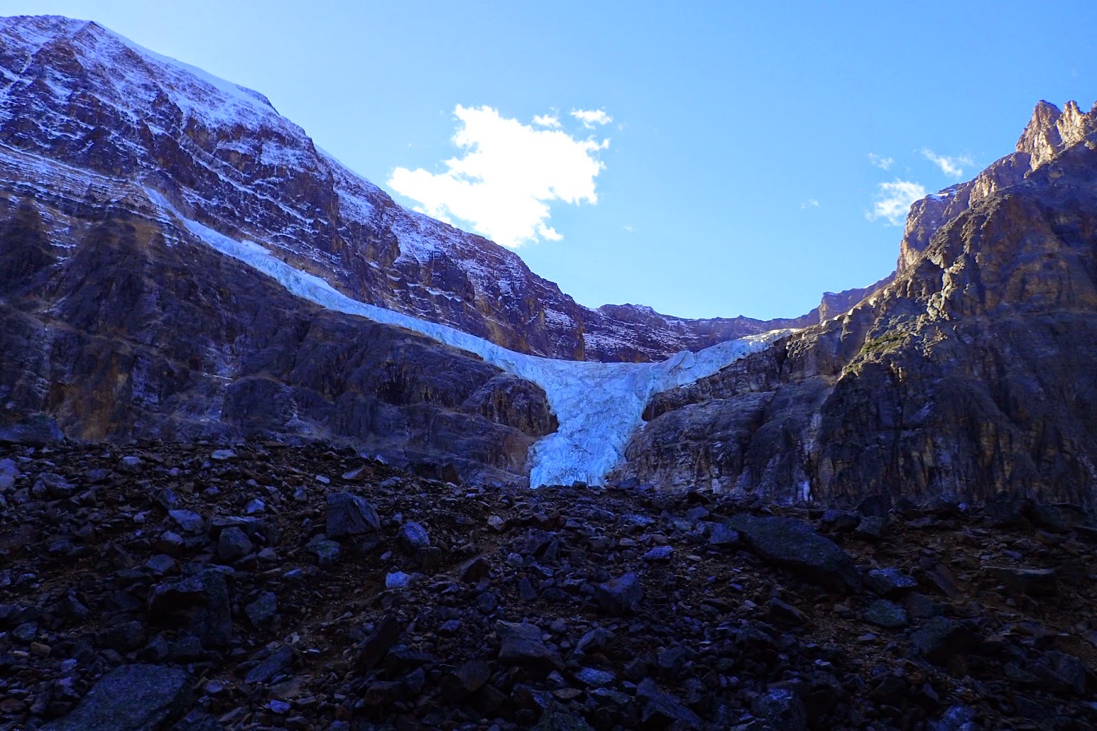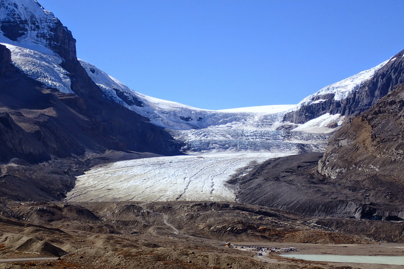 サスカチュワン氷河を見下ろす丘の上まで歩きます。