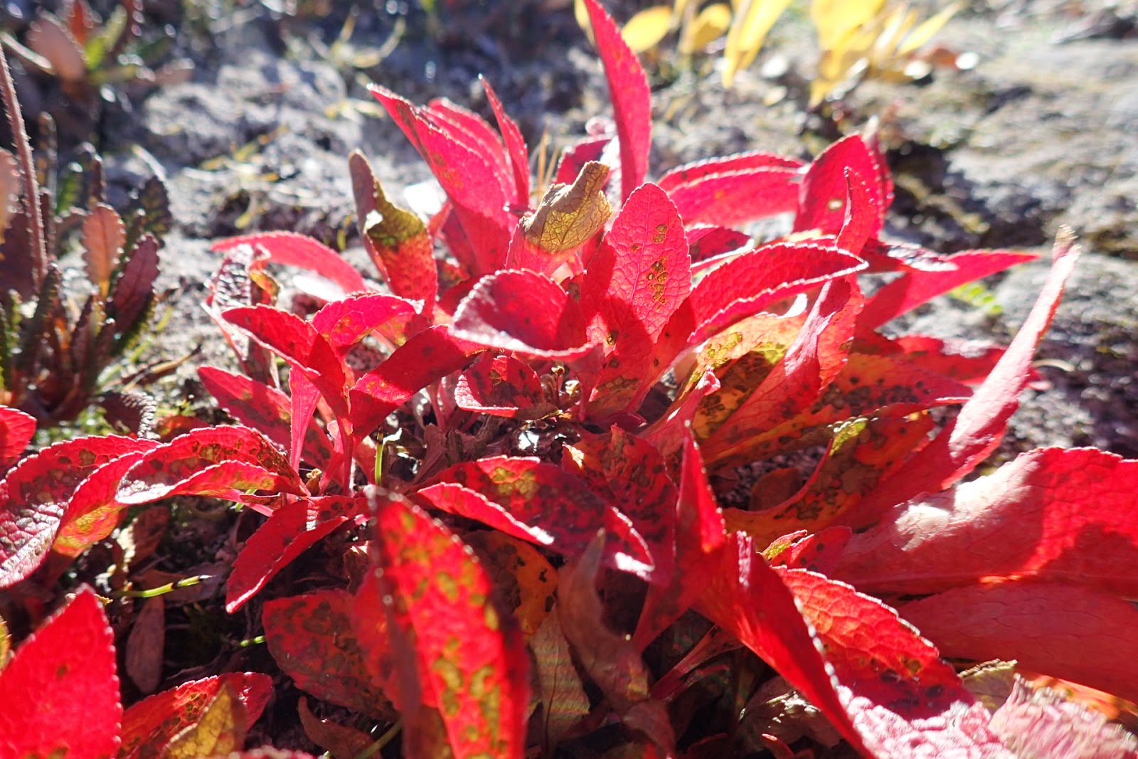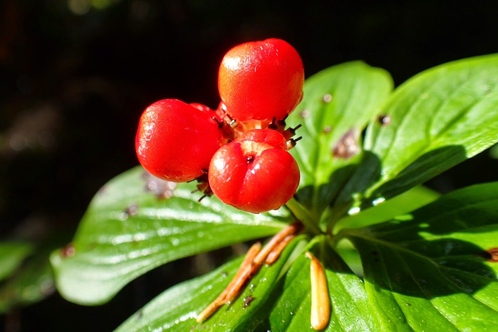 楽しく歩きながら、キニーレイクヘ。赤くなったゴゼンタチバナがキレイ。
