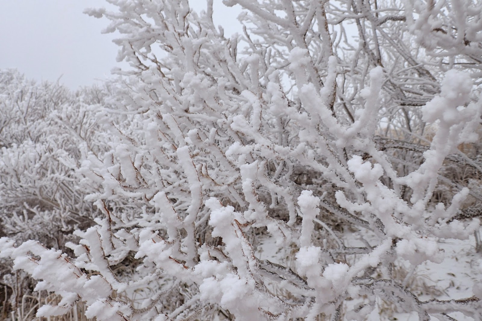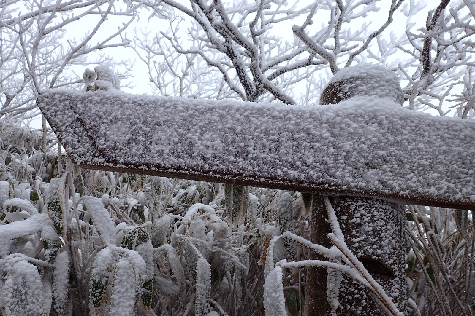 大浪池の周囲を歩く道では霧氷が付き始めました。