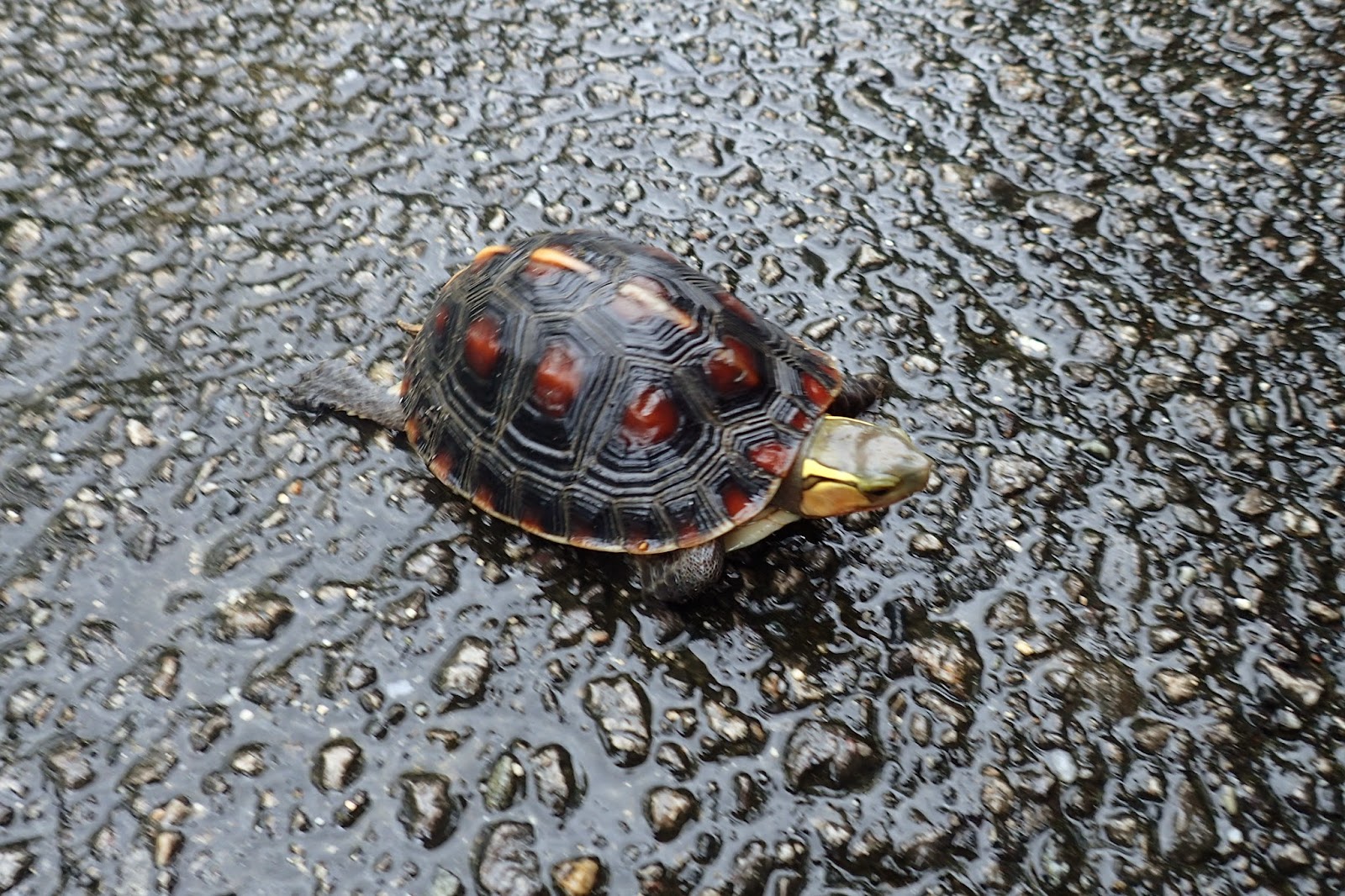 ピナイサーラの登山口目指して歩きます。道をのんびり歩いているセマルハコガメ発見!!