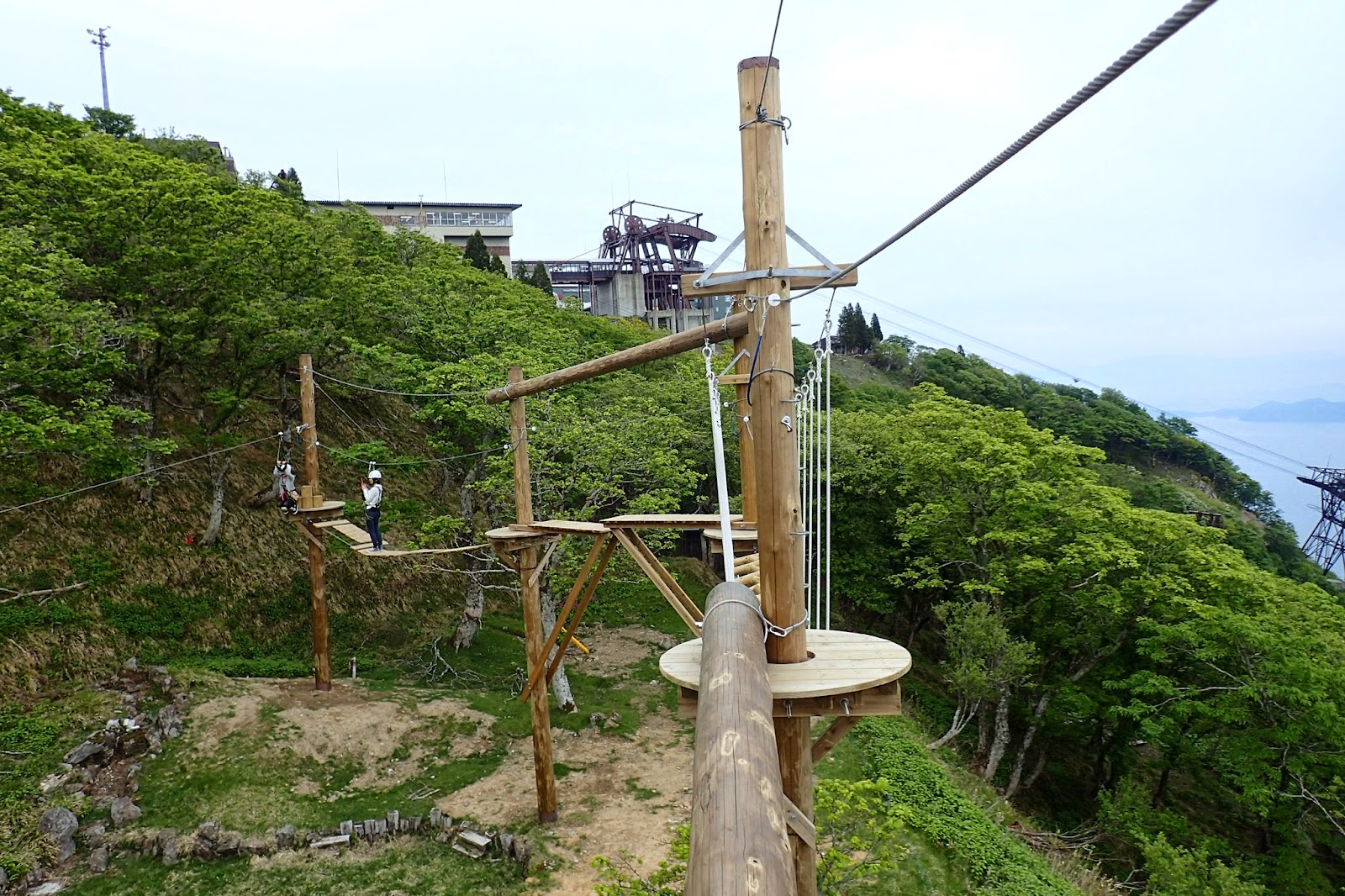 大きな違いは、びわ湖バレイはガイド同行のジップラインとスカイウォーカーというアスレチックは別々の施設&料金。