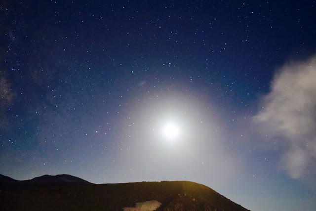 いざ撮影してみると、月が明るかった。三日月なのに満月のよう。
