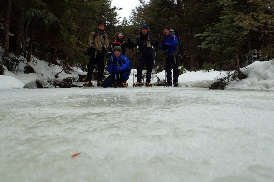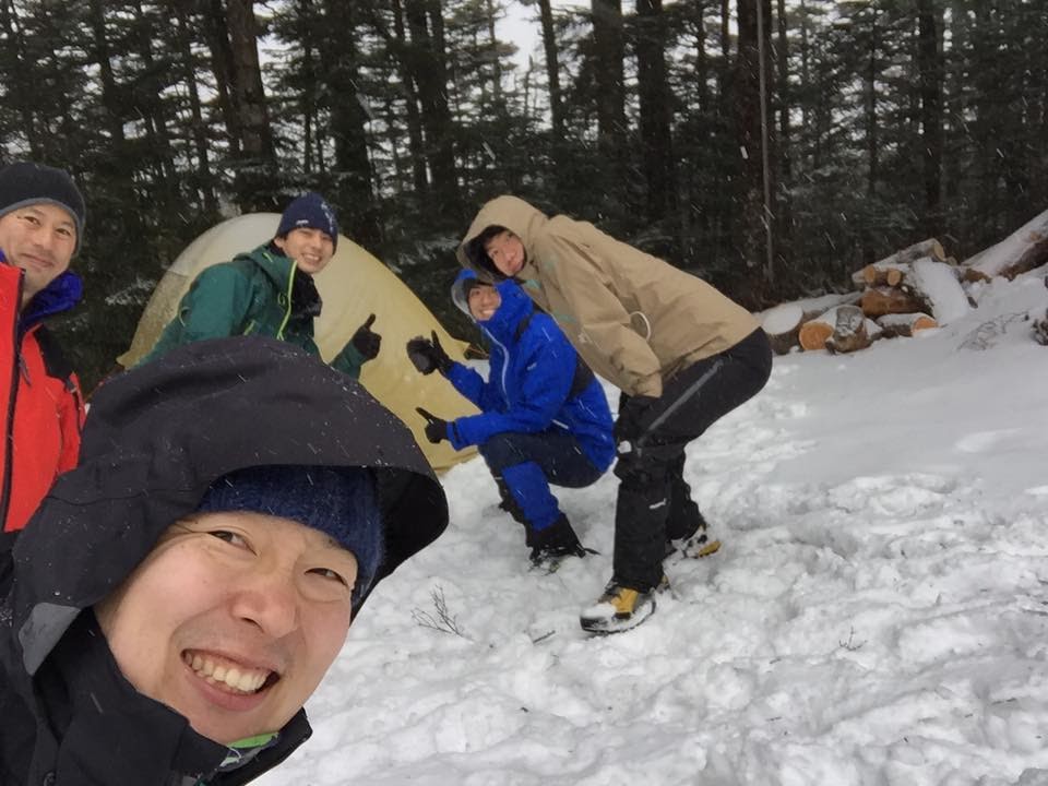 先日も一緒に大日岳に登った、雪山に登るメンバー4人と自分
