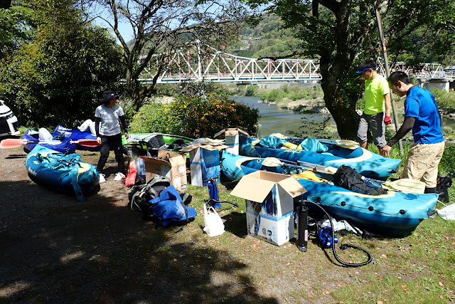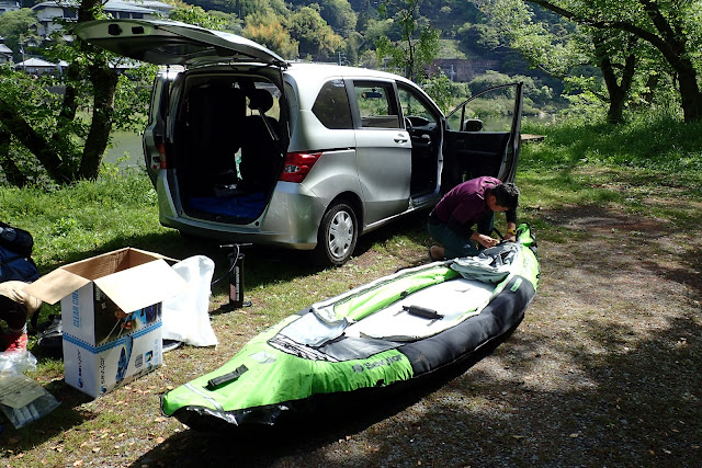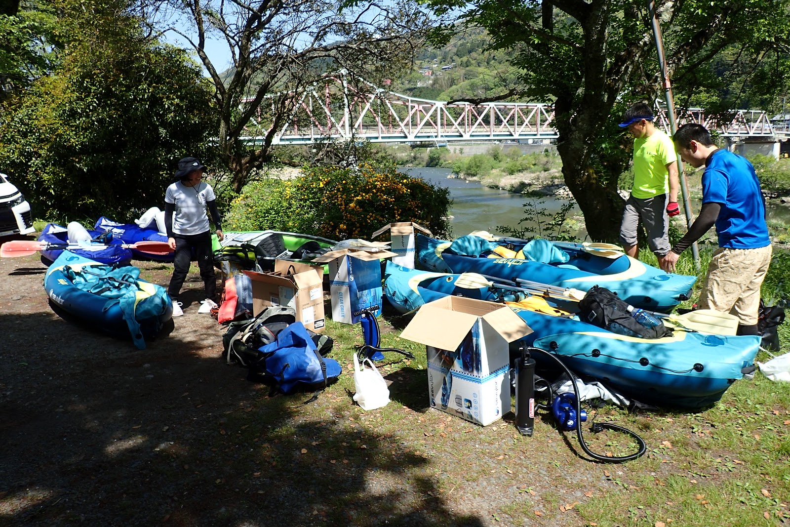 空気を入れている間に、車はゴールの加茂駅周辺の河原へ回送。