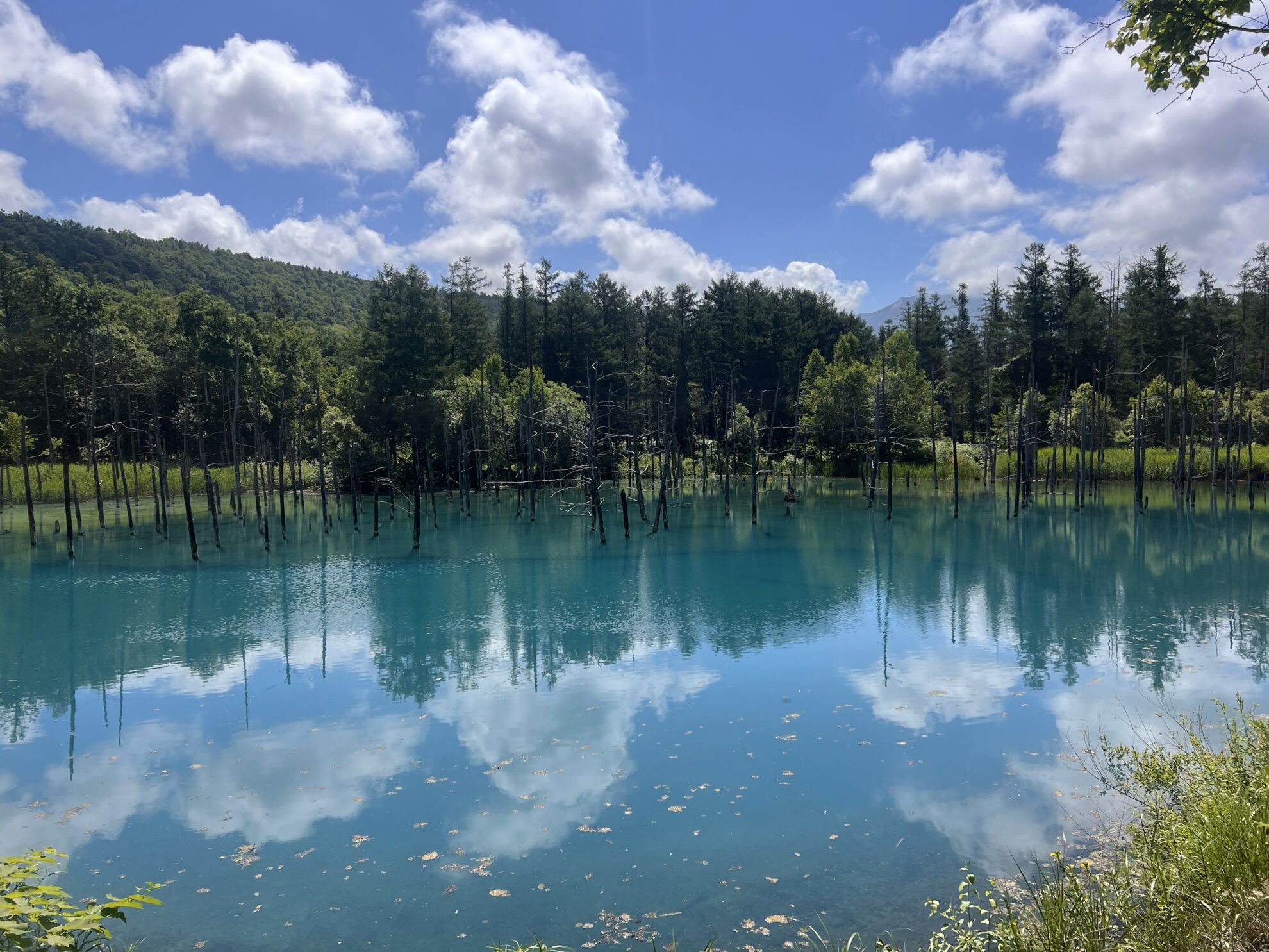まずは青い池からスタート。この青い池、人気になりましたね!当初はこんなに人気になるとは思いもしませんでした。観光地の将来性を見抜く力がなった…。