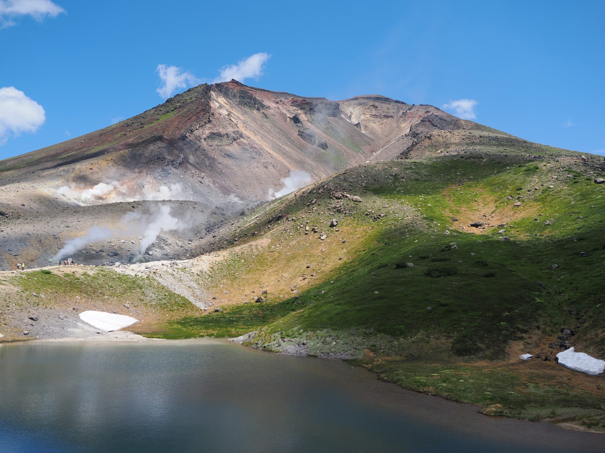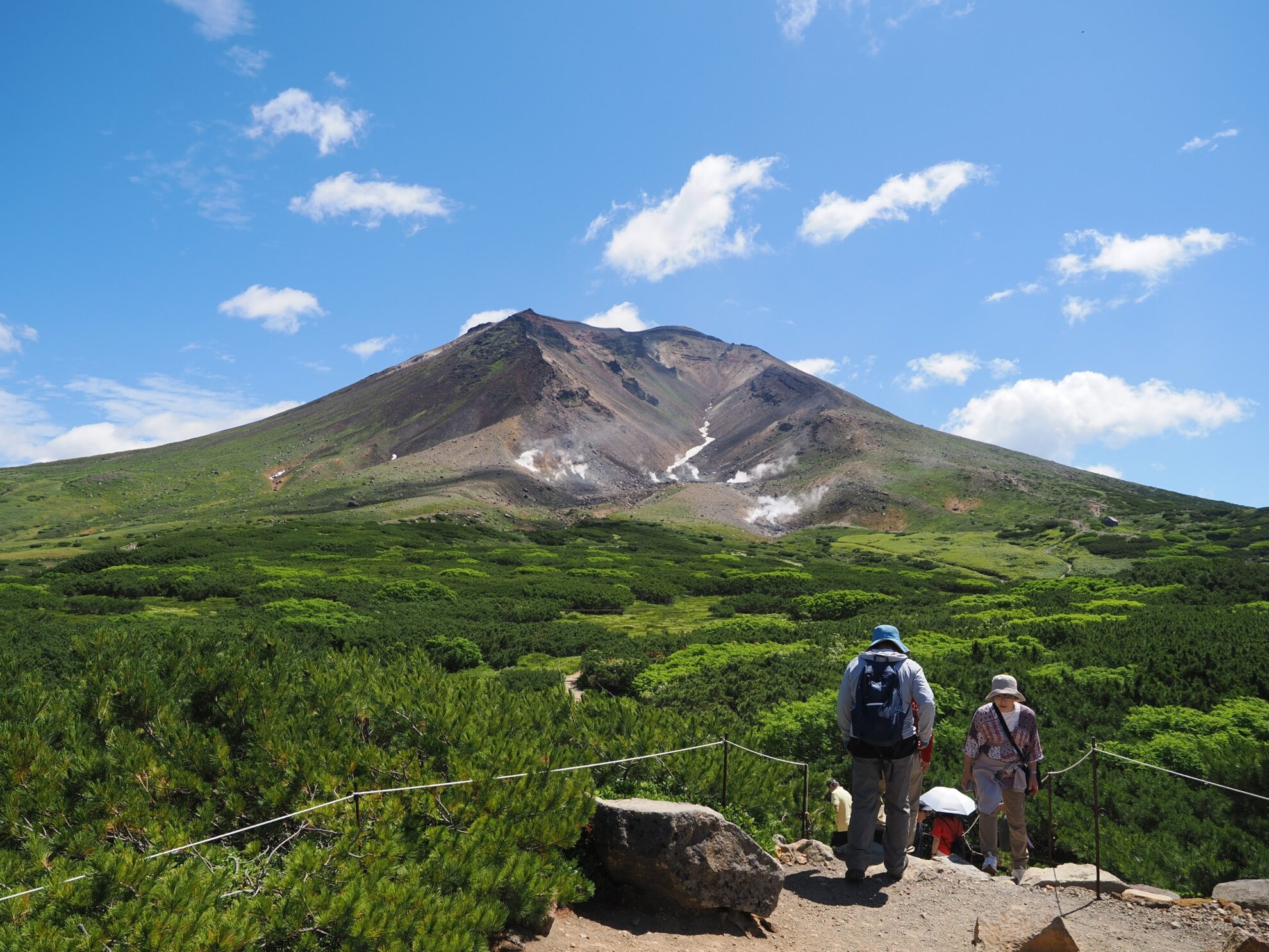 よく見ると朝イチで旭岳に登っている登山者が見えますね。もっと若かかったら登りたいとおっしゃっていましたが、このお年で北海道のハイキングができることが凄い。