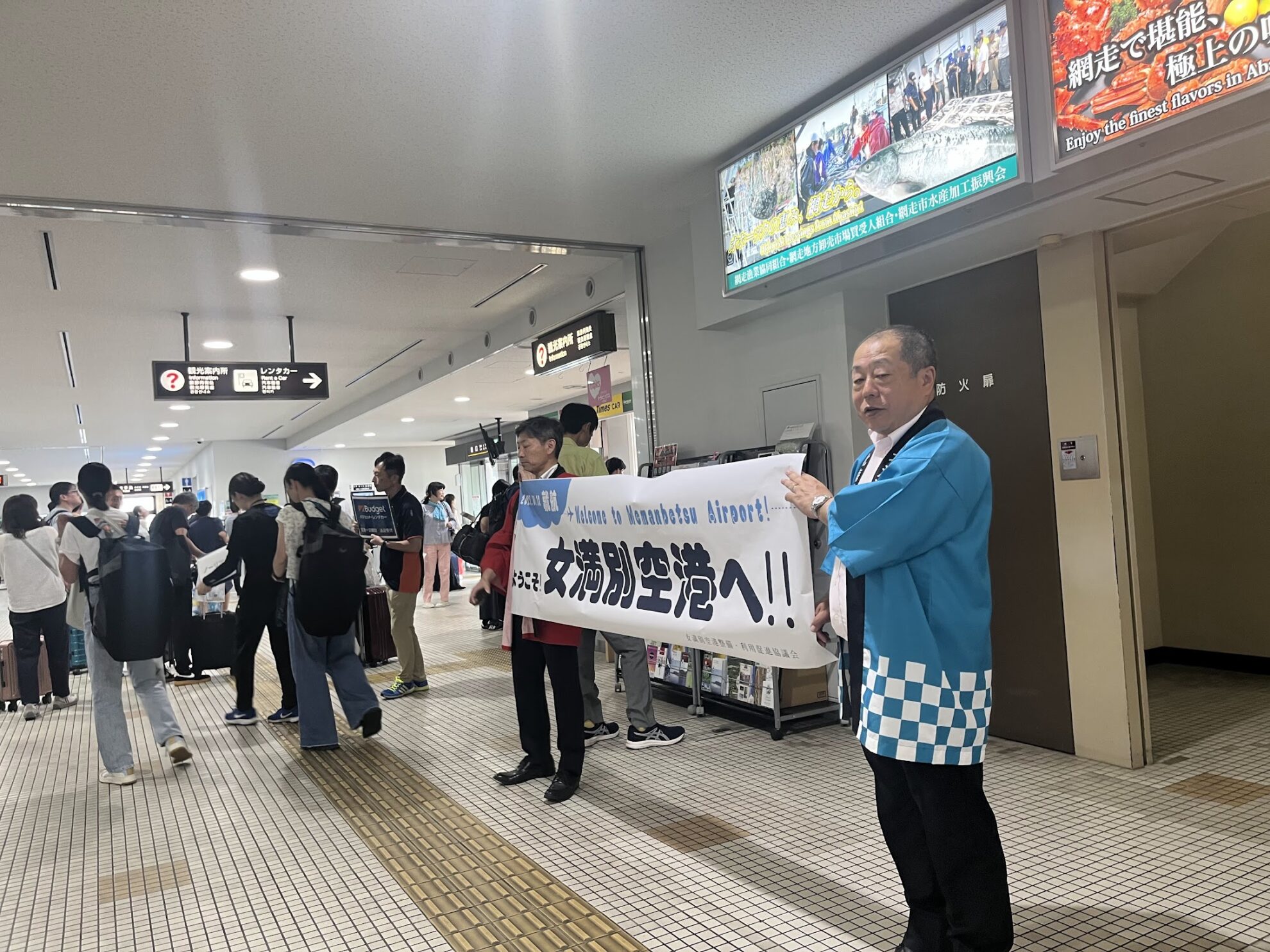 今回は女満別空港でお出迎え。私は北見で前泊してのお出迎え。この日がJALの伊丹→女満別線の就航日