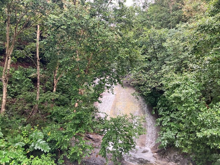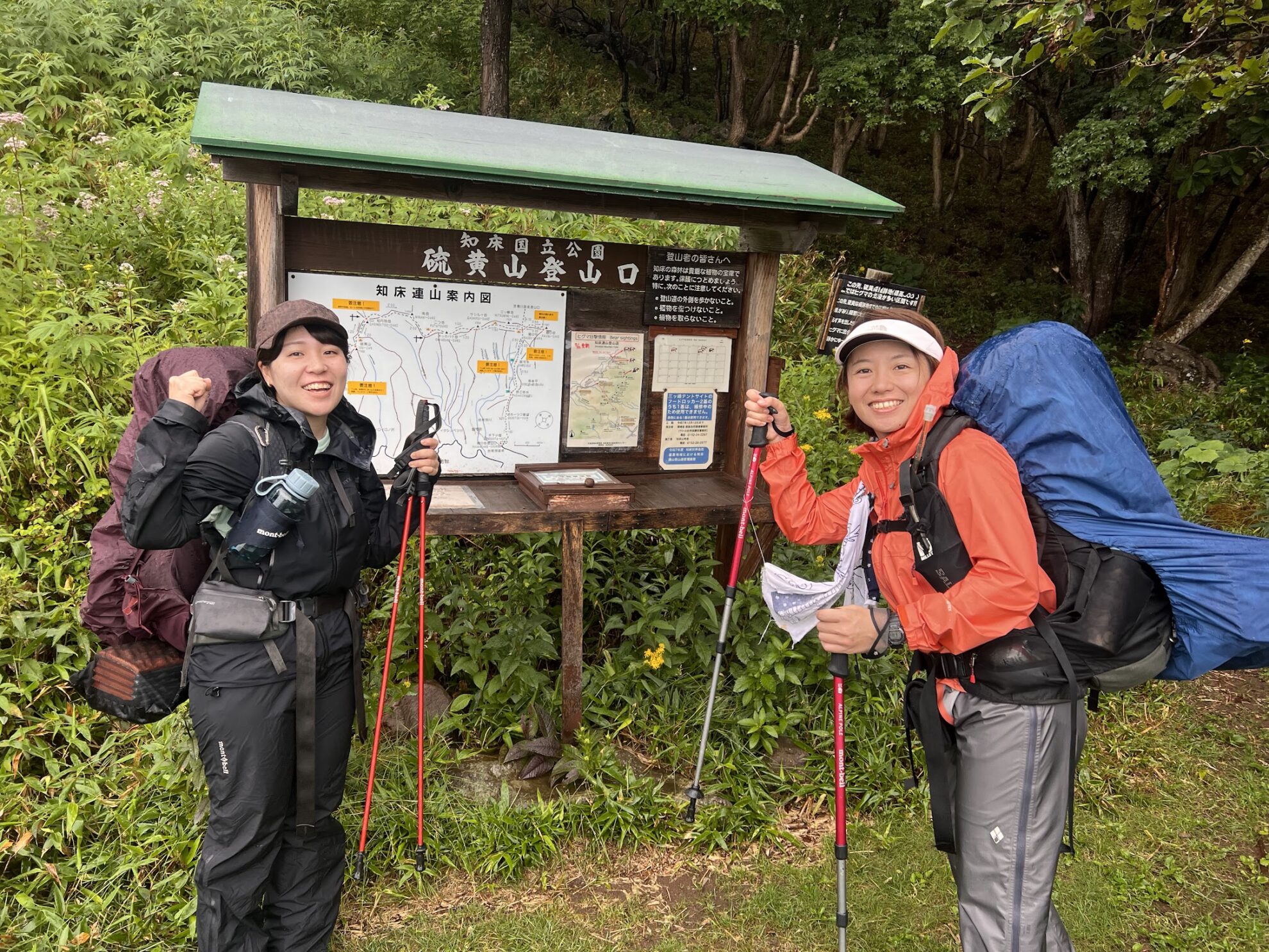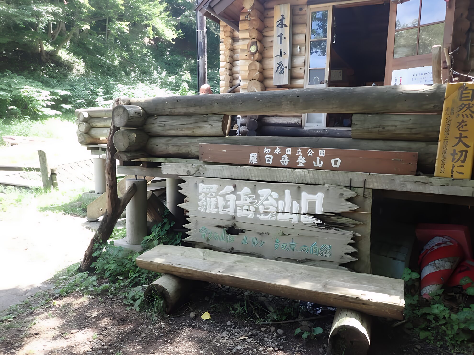 滝の少し先に、登山口。いよいよ知床の大自然に挑む登山のスタート。