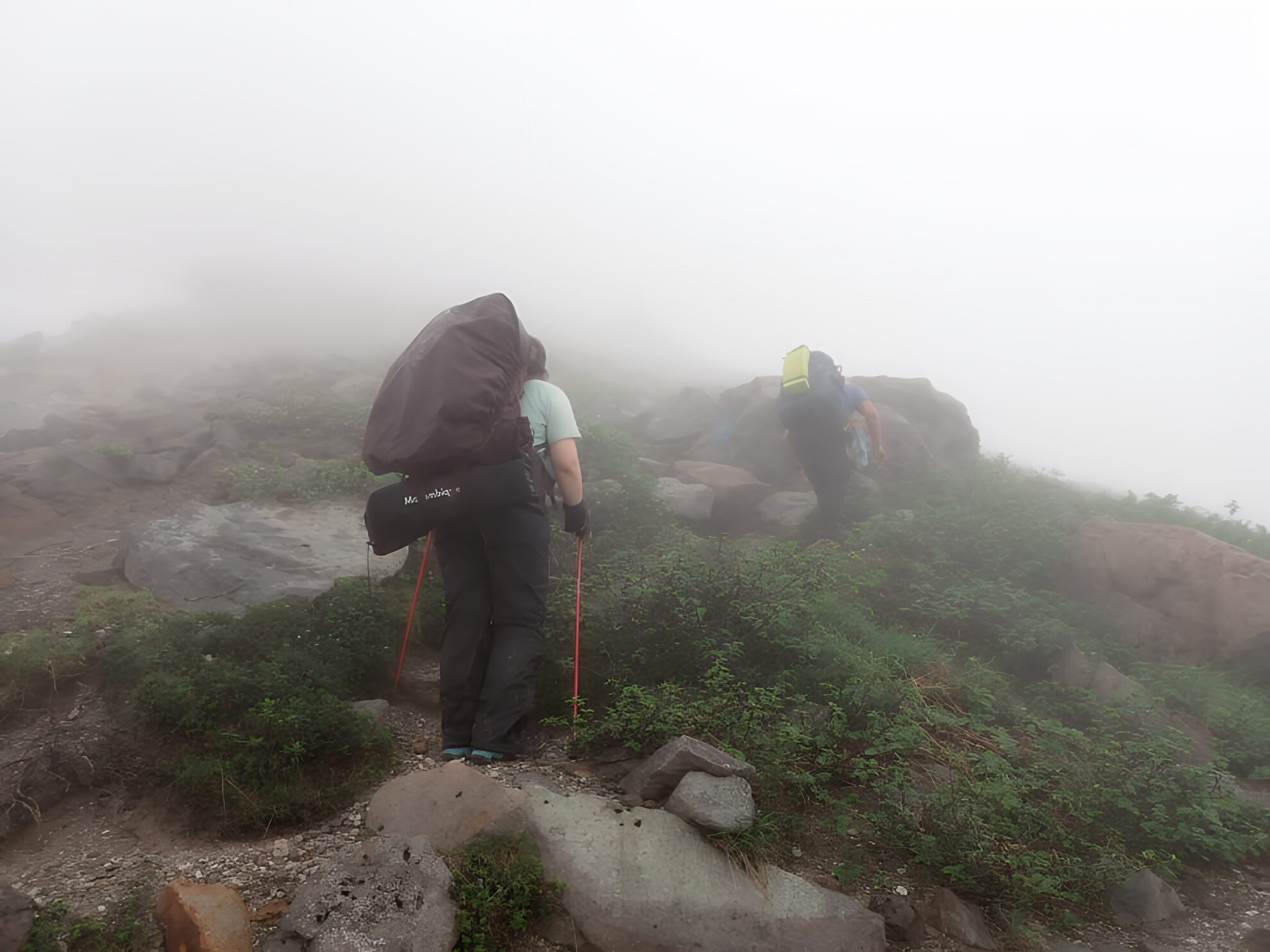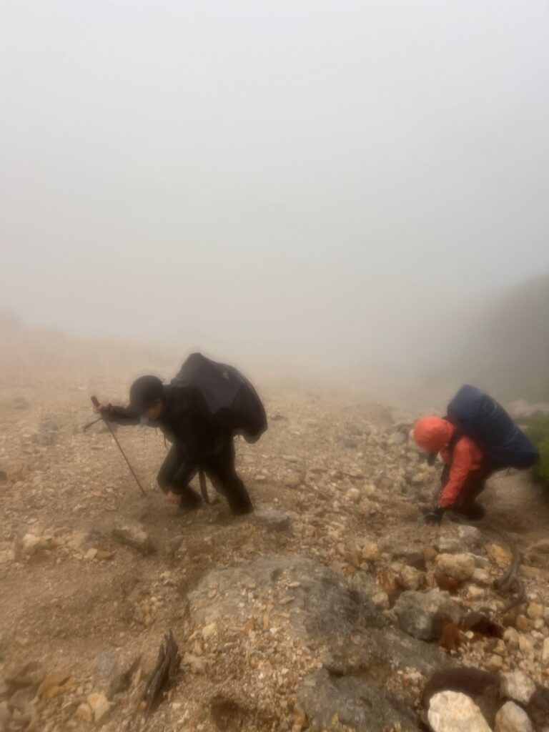 登山2日目。結論から言うとかなりハードな天候で、厳しい登山でした。