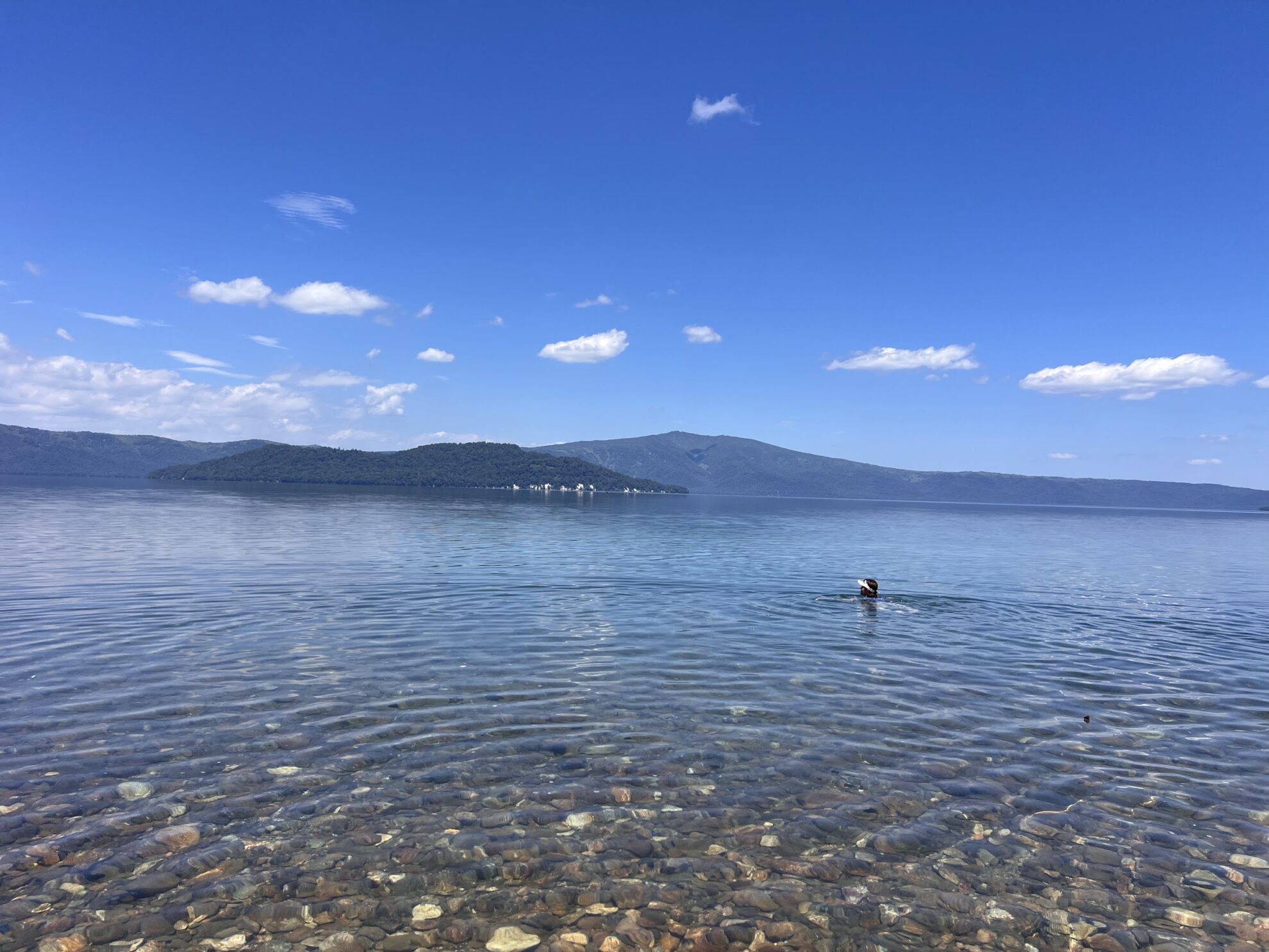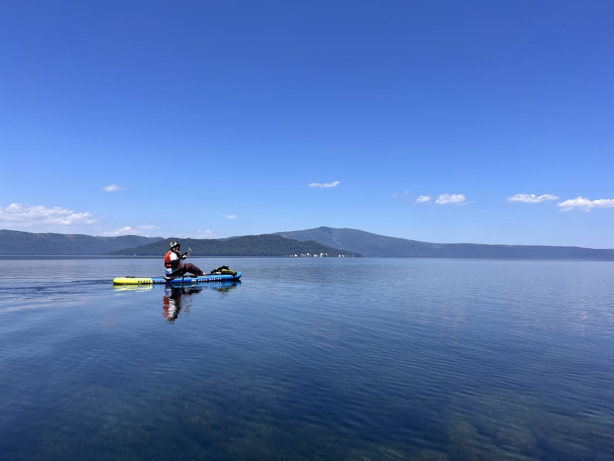 弟子屈の友人宅に保管していた、サップとカヤックを取り出して、屈斜路湖へ。