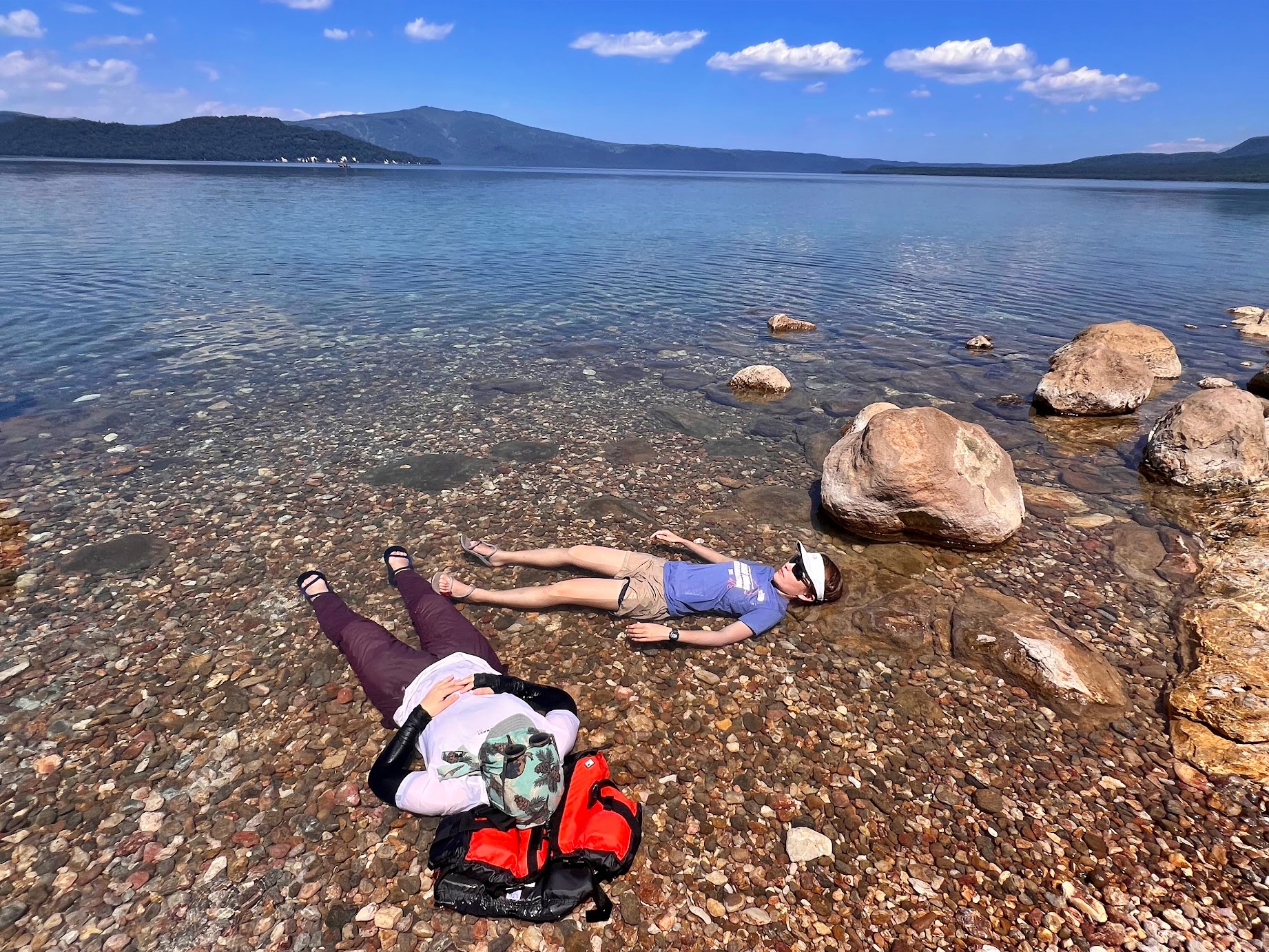 食事が終われば、テントは乾燥済み。天気が良くて暑い(30℃)超える予定ので水遊びのおまけ。