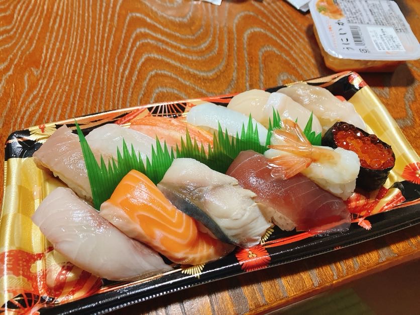 宿の食事はないので、北見のお寿司屋さんトリトンで買ってきたのを頂きました。味は間違いありません!