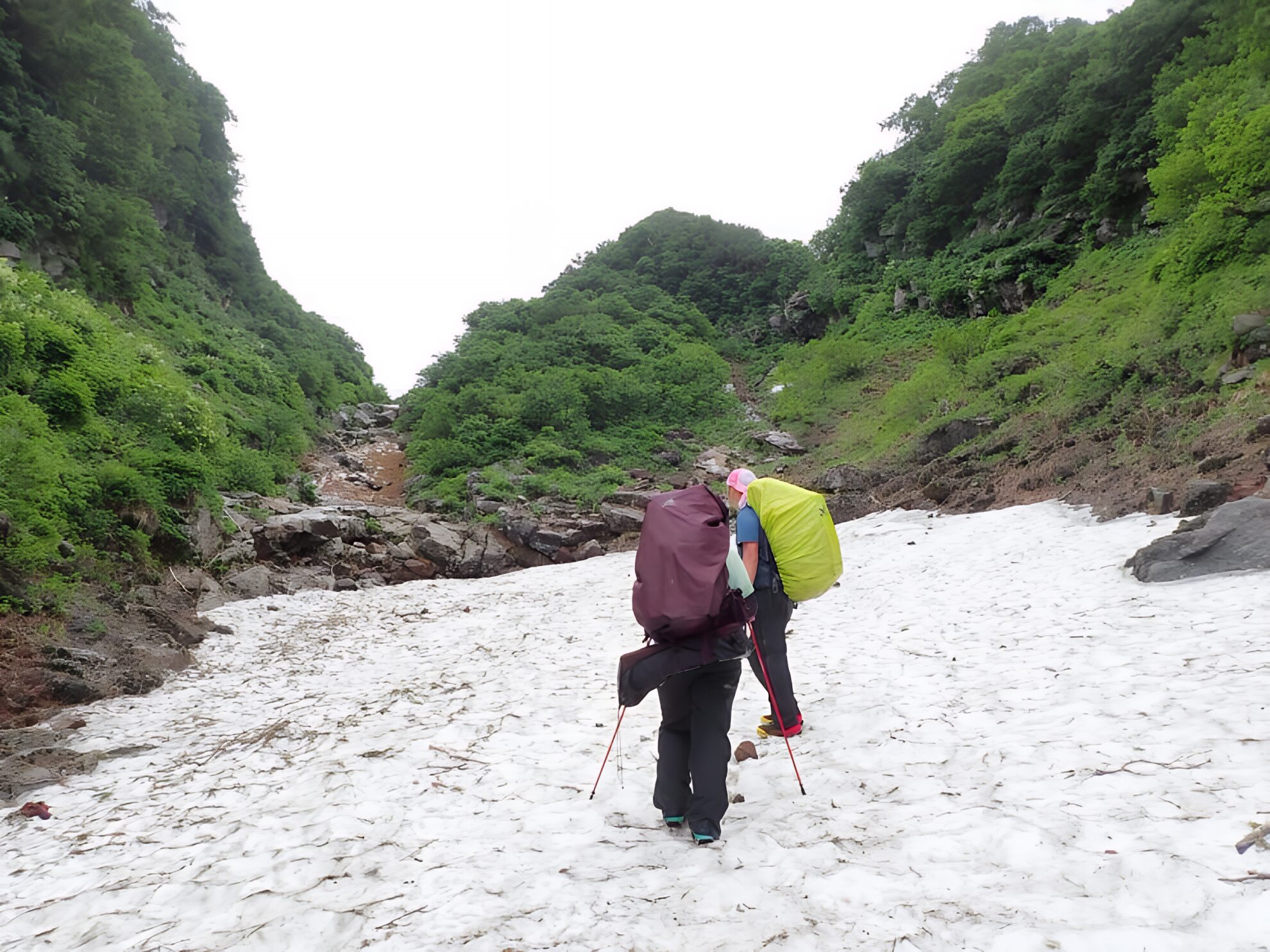 標高は高くありませんが、北斜面なので雪渓はそれなりに残っています。