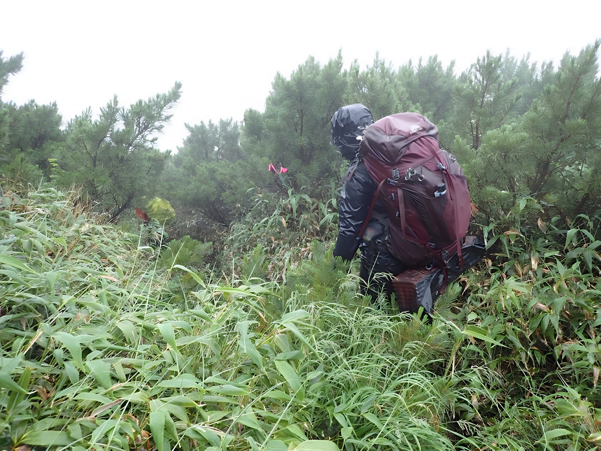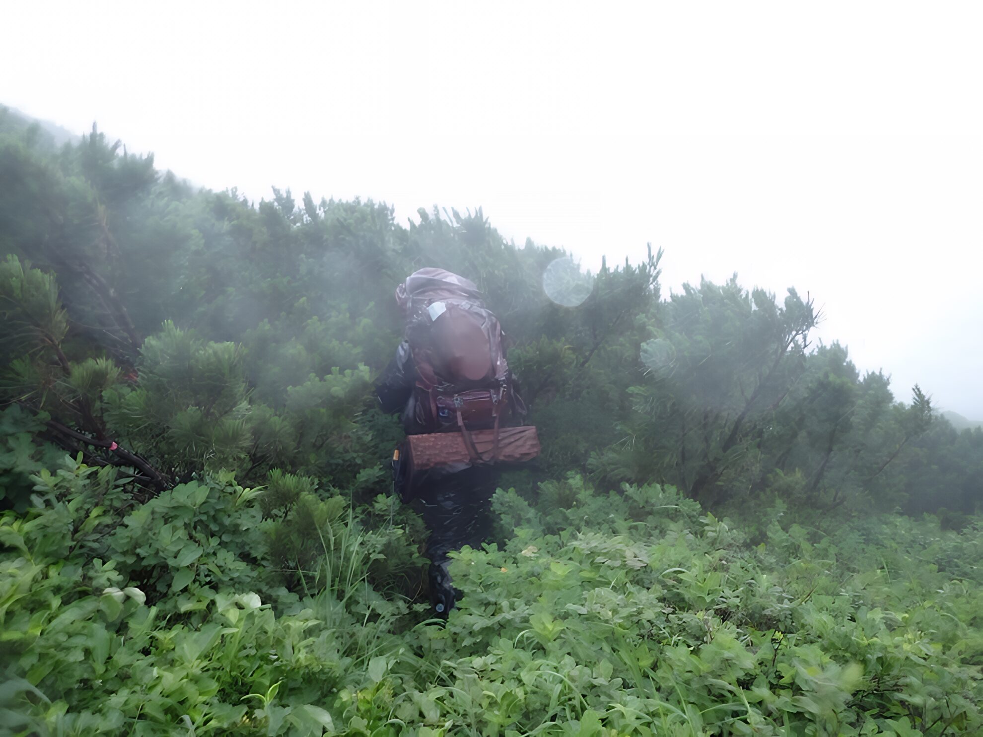 次はハイマツの藪漕ぎ 林に突っ込んでいく感じw