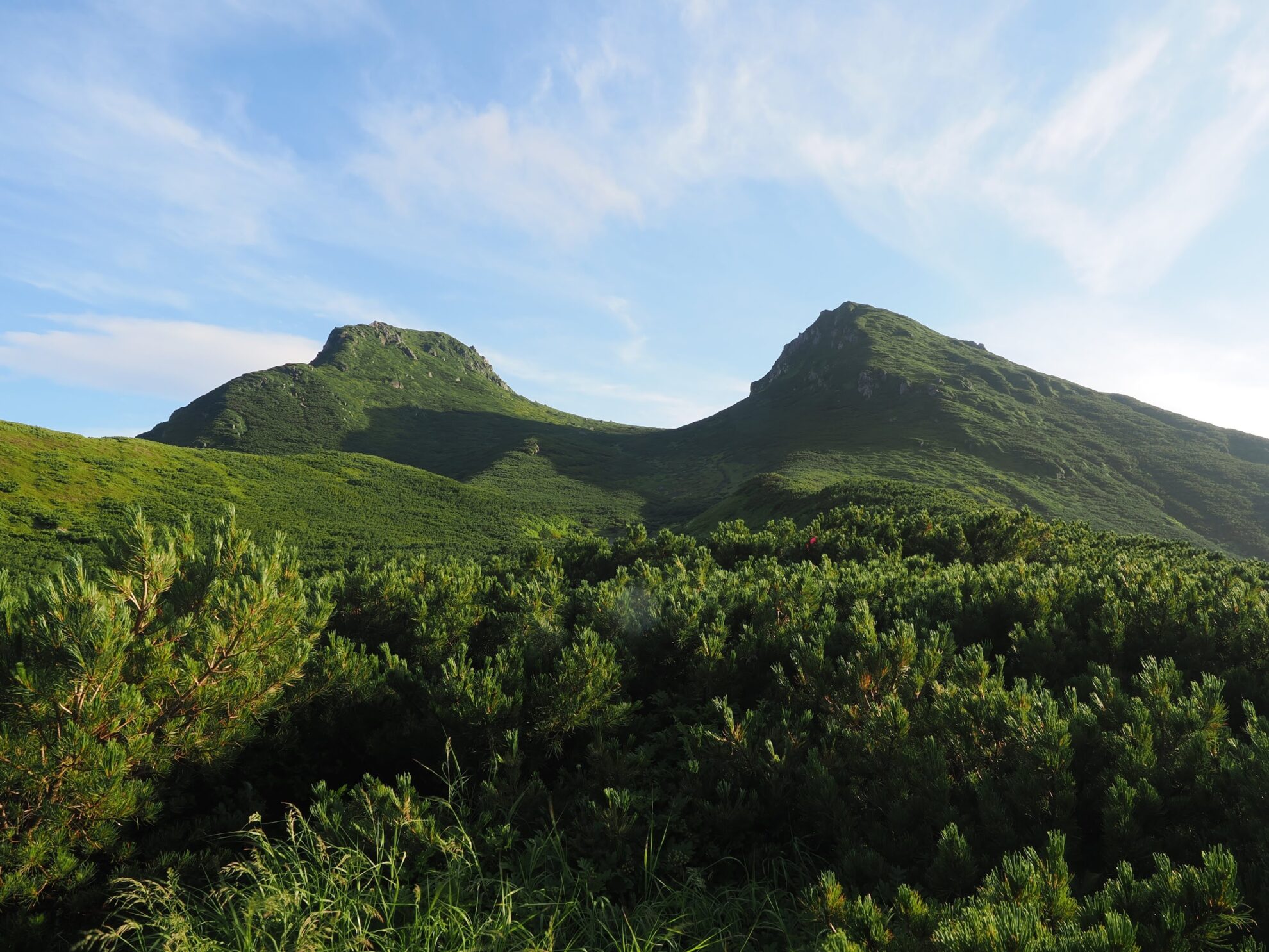 羅臼岳と知床硫黄山、知床の山の代表は羅臼岳ですが、難易度は遥かに知床硫黄山が上回ります。山も深いし、技術的難易度も上。さらに登山道の整備も万全ではありません。人が少なくてワイルドな登山が楽しめるのが知床硫黄山です。